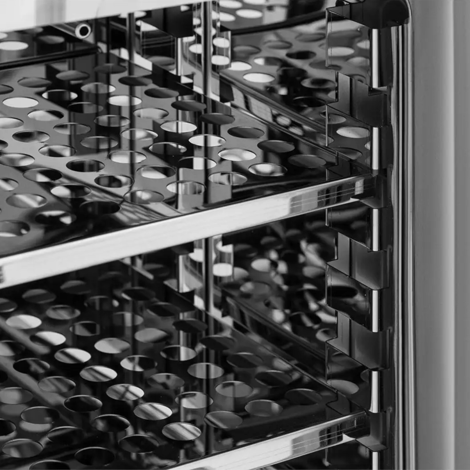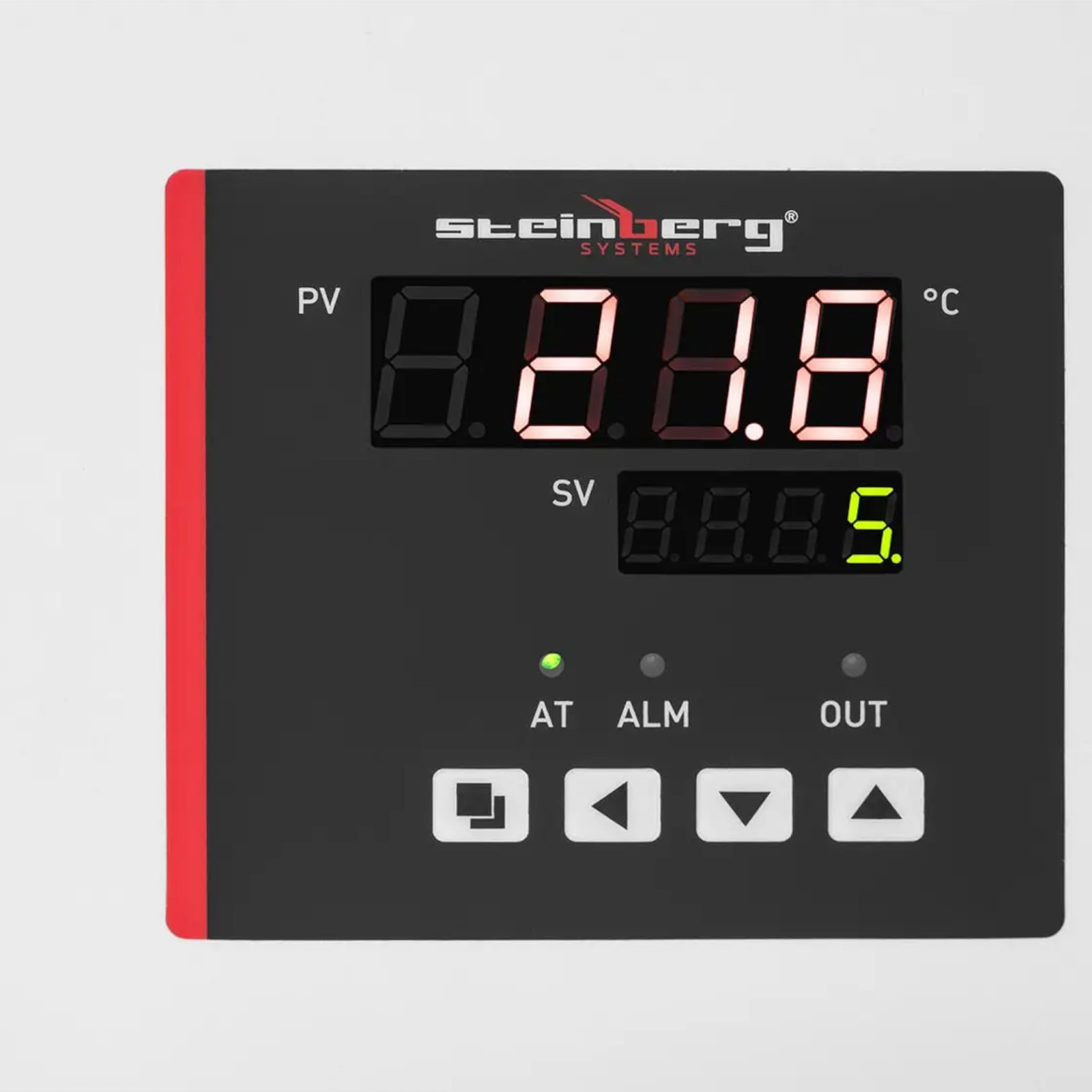 Inkubator laboratoryjny marki Steinberg Systems pozwala zapewnić stałą temperaturę do rozwoju mikroorganizmów, kultur komórkowych czy sadzonek. Urządzenie zapewnia idealne warunki dla wsadu za sprawą programów PID, które ustawiane są na panelu sterowania i sprawdzane z wyświetlaczem LED. Cieplarka oferuje takie funkcje, jak ustawianie czasu i temperatury, zabezpieczenie przed przegrzaniem, timer i automatyczne wyłączanie. Regulator temperatury z podziałką 0,1°C precyzyjnie utrzymuje temperaturę pokojową + 5 – 65°C w zadanym czasie 0 – 9999 min. Czujnik PT100 stale kontroluje temperaturę i automatycznie koryguje wszelkie odchylenia. W rezultacie inkubator utrzymuje warunki w komorze szczególnie precyzyjnie i stabilnie. Wnętrze jest wykonane ze stali nierdzewnej z zaokrąglonymi krawędziami, dzięki czemu jest wyjątkowo łatwe do czyszczenia i niewrażliwe na korozję lub inne wpływy środowiska. Pojemność 12,8 l sprawia, że jest bardzo kompaktowy i może być używany również w ciasnych przestrzeniach. Dwie półki o maksymalnym załadunku 5 kg, pozwalają dobrze wykorzystać komorę cieplarki. Okienko podglądowe w połączeniu z oświetleniem pozwala na łatwe sprawdzenie próbek w dowolnym momencie bez konieczności otwierania drzwi inkubatora. Obudowa wykonana jest z mocnej walcowanej stali z powłoką elektrostatyczną, co gwarantuje wyjątkową trwałość urządzenia.