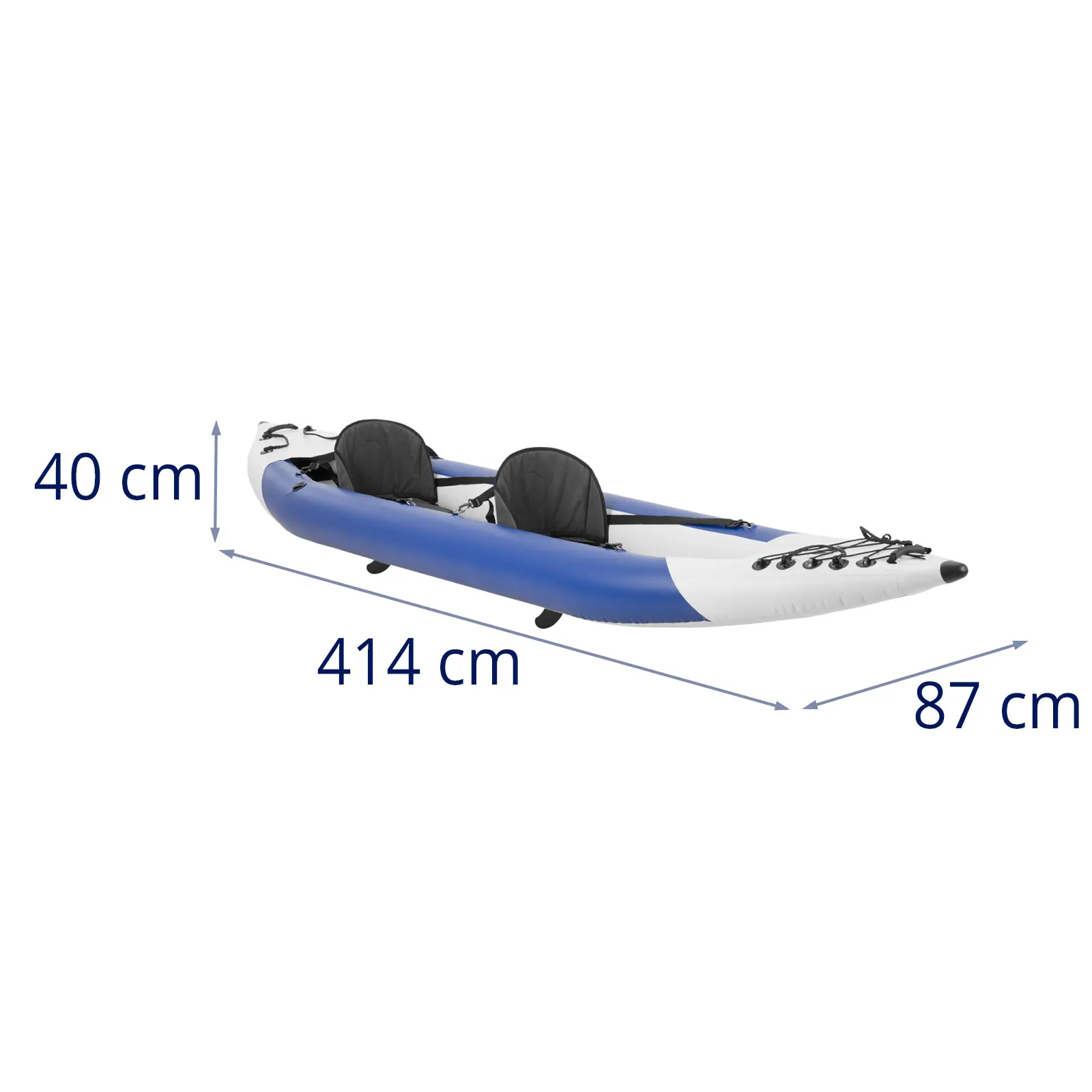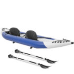 - – Zestaw zawiera 2 wiosła, 2 płetwy, 2 siedziska z oparciem, pompkę, zestaw naprawczy i torbę transportową,
