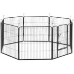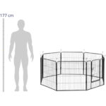 Kojec dla psa marki Wiesenfield umożliwia szczeniakom, królikom i innym małym oraz średnim zwierzętom bezpieczny wybieg. Klatkę dla szczeniaka można ustawić szybko i łatwo, zarówno wewnątrz, jak i na zewnątrz, używając tylko dostarczonego drążka montażowego. 8 segmentów modułowych dostosować można do pomieszczenia i swoich pomysłów. Gdy kojec dla psa nie będzie już potrzebny, można go złożyć i schować, aby zaoszczędzić miejsce. Metalowy wybieg dla szczeniąt ma podwyższone drzwi 38 x 47. Dzięki nim matka może swobodnie wchodzić i wychodzić, podczas gdy szczeniaki pozostaną w środku. Zaokrąglone krawędzie zapobiegają urazom podczas użytkowania. Dzięki rozmiarowi oczek 50 x 150 mm kojec przez cały czas ochroni zwierzęta przed zagrożeniem i zapewni im przestrzeń do bezpiecznego poznania i odkrywania nowego środowiska. Kojec wykonany z lakierowanej stali jest wysoce odporny na rdzę, warunki atmosferyczne i promienie UV. Mocna rama składa się z rur o grubości 0,8 mm i średnicy 12 mm, co przekłada się na wysoką jakość. Antypoślizgowe nóżki chronią podłogę i gwarantują bezpieczne oparcie. Czyszczenie jest bardzo proste. Gładkie powierzchnie wystarczy wytrzeć wilgotną ściereczką i wodą z łagodnym płynem.