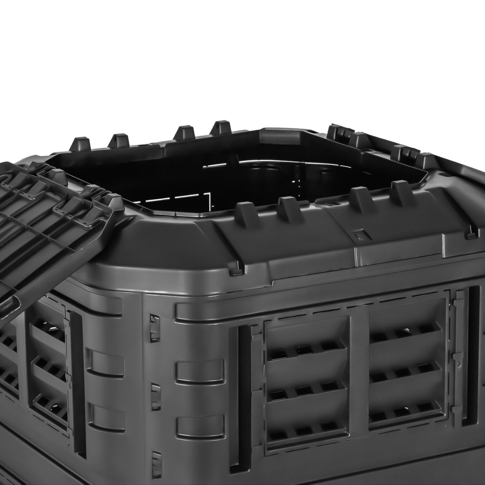 Konstrukcję kompostownika o pojemności 1120 l wykonano z trwałego polipropylenu. Jest ona łatwa w montażu, dzięki zawiasom i modułowej budowie. Dla zwiększenia stabilności można przymocować ją za pomocą haków do podłoża. Ściany posiadają otwory wentylacyjne i system nawadniania kropelkowego, zapewniające idealne warunki do rozkładania się odpadków. Konstrukcja ścian zapobiega dostawaniu się do wnętrza większych zwierząt. Kompostownik przy gruncie wyposażony został w klapy, do usuwania uzyskanej gleby ogrodowej. Do zwiększenia efektywności kompostownika można zastosować dżdżownice, chrząszcze, bakterie i grzyby a także obornik.