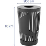 Kosz na odpady śmieci miejski zewnętrzny okrągły z żelaza śr. 50 x 80 cm ciemnoszary