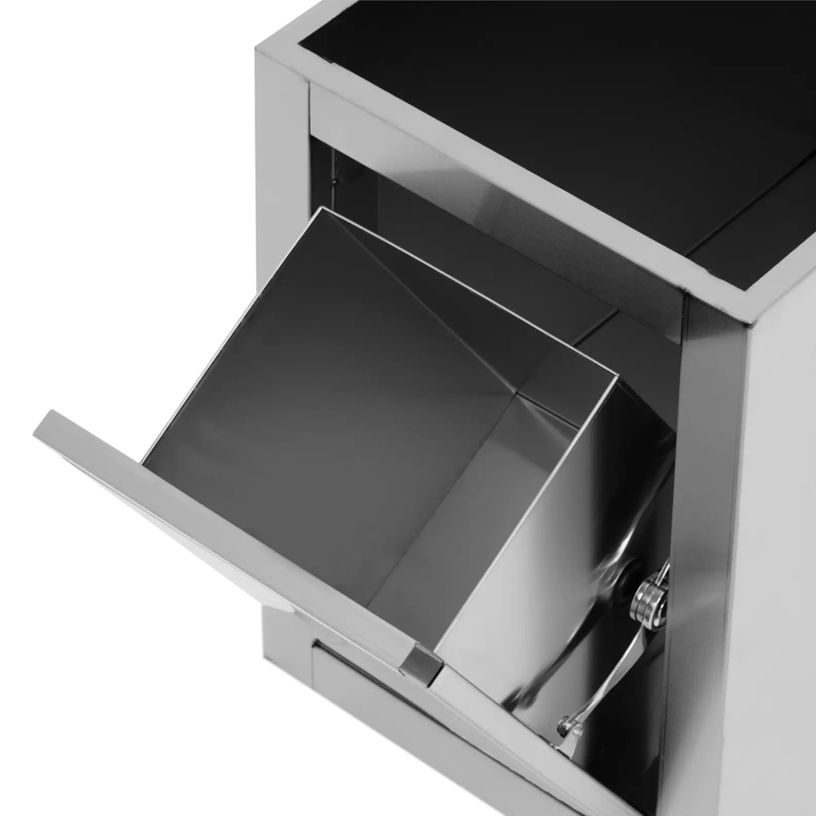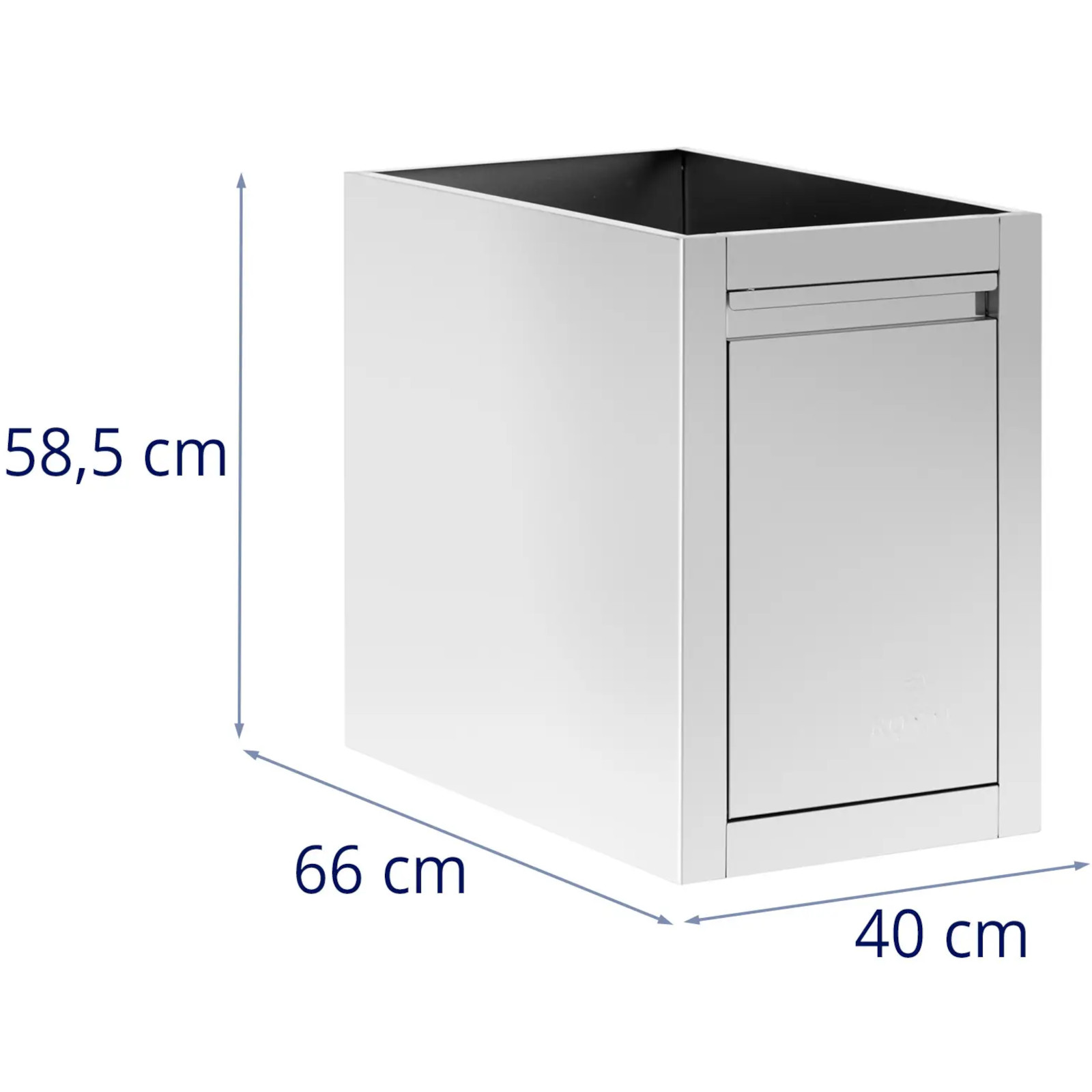 Podblatowy kosz na śmieci marki Royal Catering pozwala dyskretnie wyrzucić odpadki. Korpus idealnie pasuje pod stoły robocze ze stali nierdzewnej o głębokości 70 cm i dlatego doskonale wkomponuje się z nowoczesnymi projektami kuchni. Stwarza porządek i profesjonalne wrażenie. Dyskretny śmietnik można wykorzystać także w domach, budynkach użyteczności publicznej, pomieszczeniach sanitarnych i magazynach. Odchylany front pozwala łatwo otworzyć drzwiczki jedną ręką i wsunąć resztki do dużego zbiornika. Pojemnik ma pojemność 125 litrów. Szeroki uchwyt przechyla front do przodu. Oszczędza to kłopotów z wyciąganiem i zamykaniem pokrywy. Mimo to śmieci są dyskretnie zakryte. Kosz na śmieci odchyla się z powrotem do pionowej pozycji, aby go schować i zaoszczędzić miejsce pod blatem. Panel ukrywa resztki oraz zapobiega przedostawaniu się nieprzyjemnych zapachów. Pojemnik na odpady jest idealny do miejsc, w których ważna jest higiena i oszczędność przestrzeni. Kosz otrzymuje się w pełni zmontowany i gotowy do natychmiastowego użycia. Korpus i pojemnik wewnętrzny wykonane są ze stali nierdzewnej, która ma elegancki wygląd i gładkie powierzchnie. Łatwy w czyszczeniu pojemnik na odpady można po prostu wyjąć. Nawet przy intensywnym użytkowaniu, wytrzymały materiał nie wykazuje prawie żadnych oznak zużycia, co oznacza, że pozostanie niezawodnym urządzeniem przez długi czas.