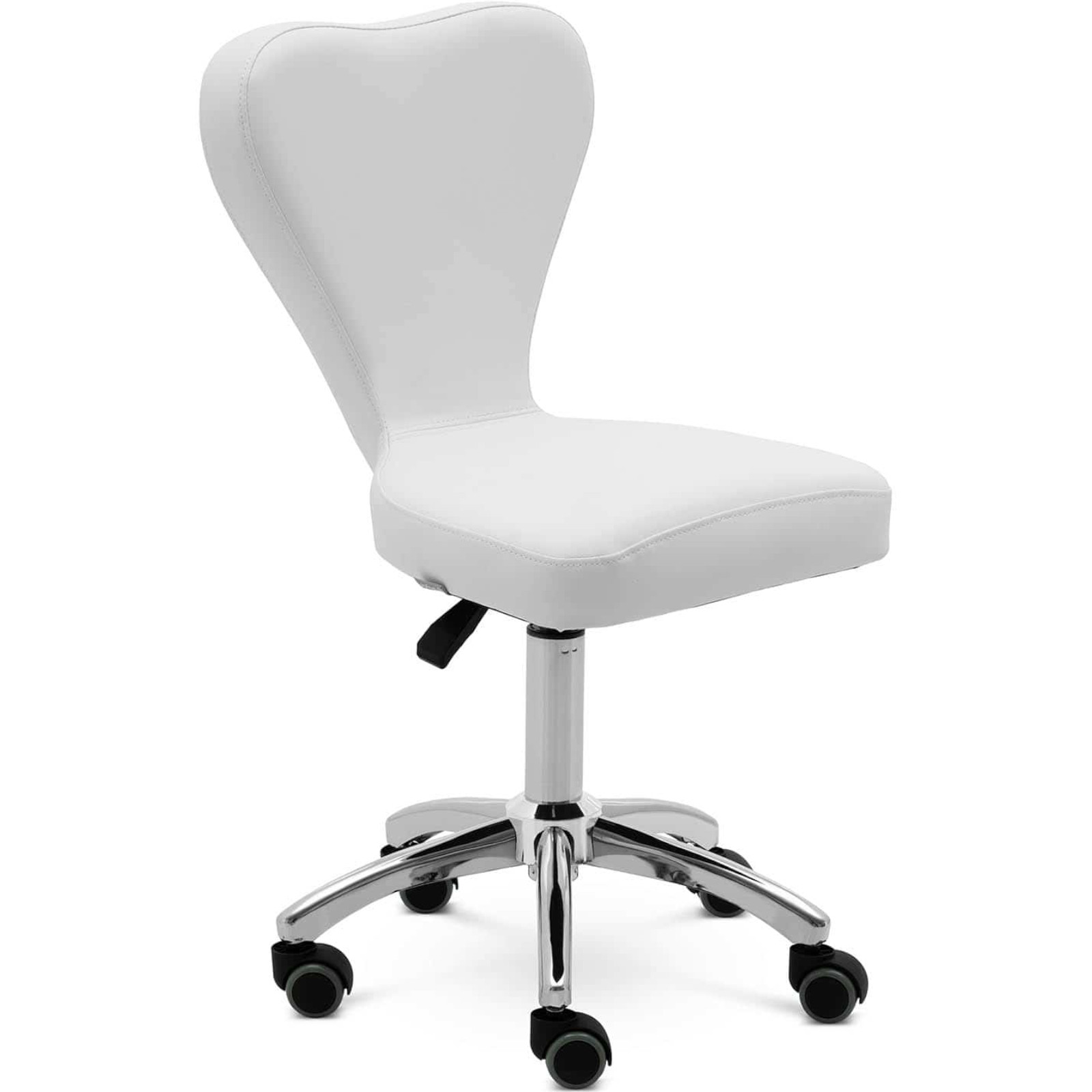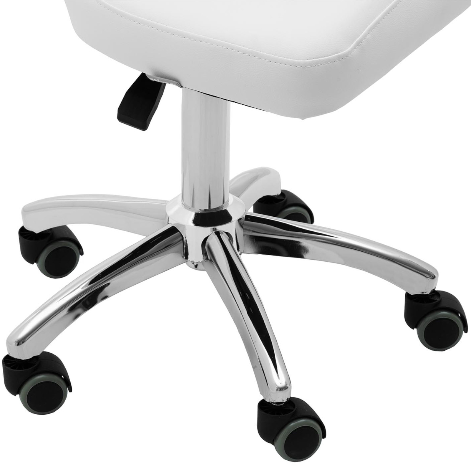 Krzesło kosmetyczne obrotowe z oparciem na kółkach 49-63 cm PULLY - białe