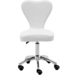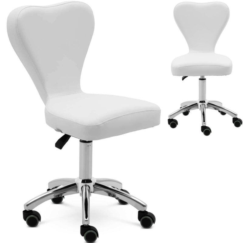 Krzesło kosmetyczne obrotowe z oparciem na kółkach 49-63 cm PULLY – białe