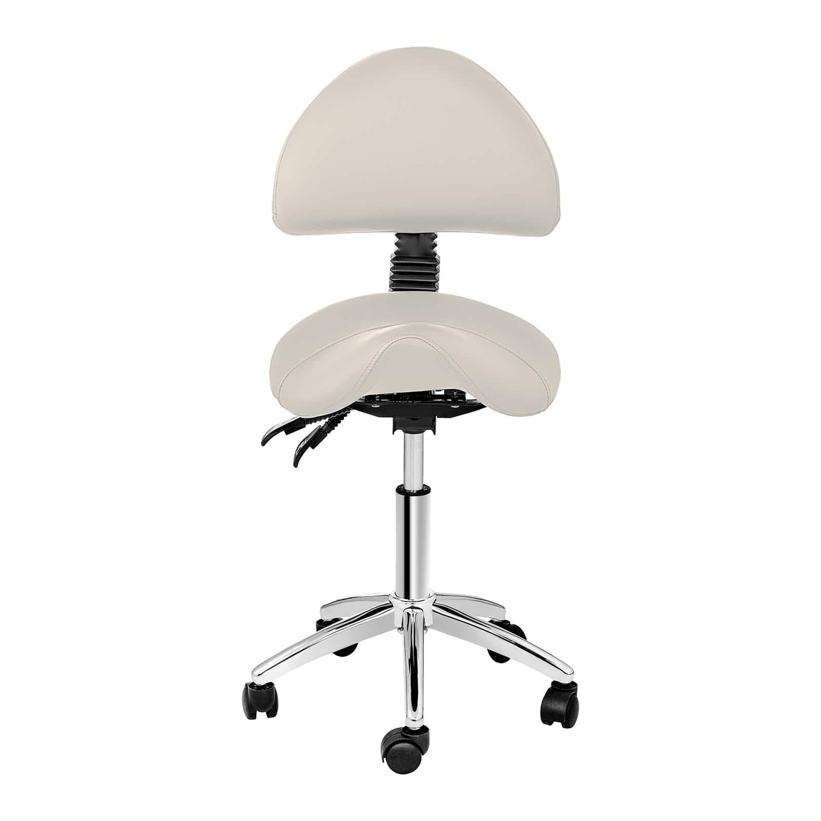 Krzesło kosmetyczne siodłowe z oparciem obrotowe regulowane BERLIN – beżowe