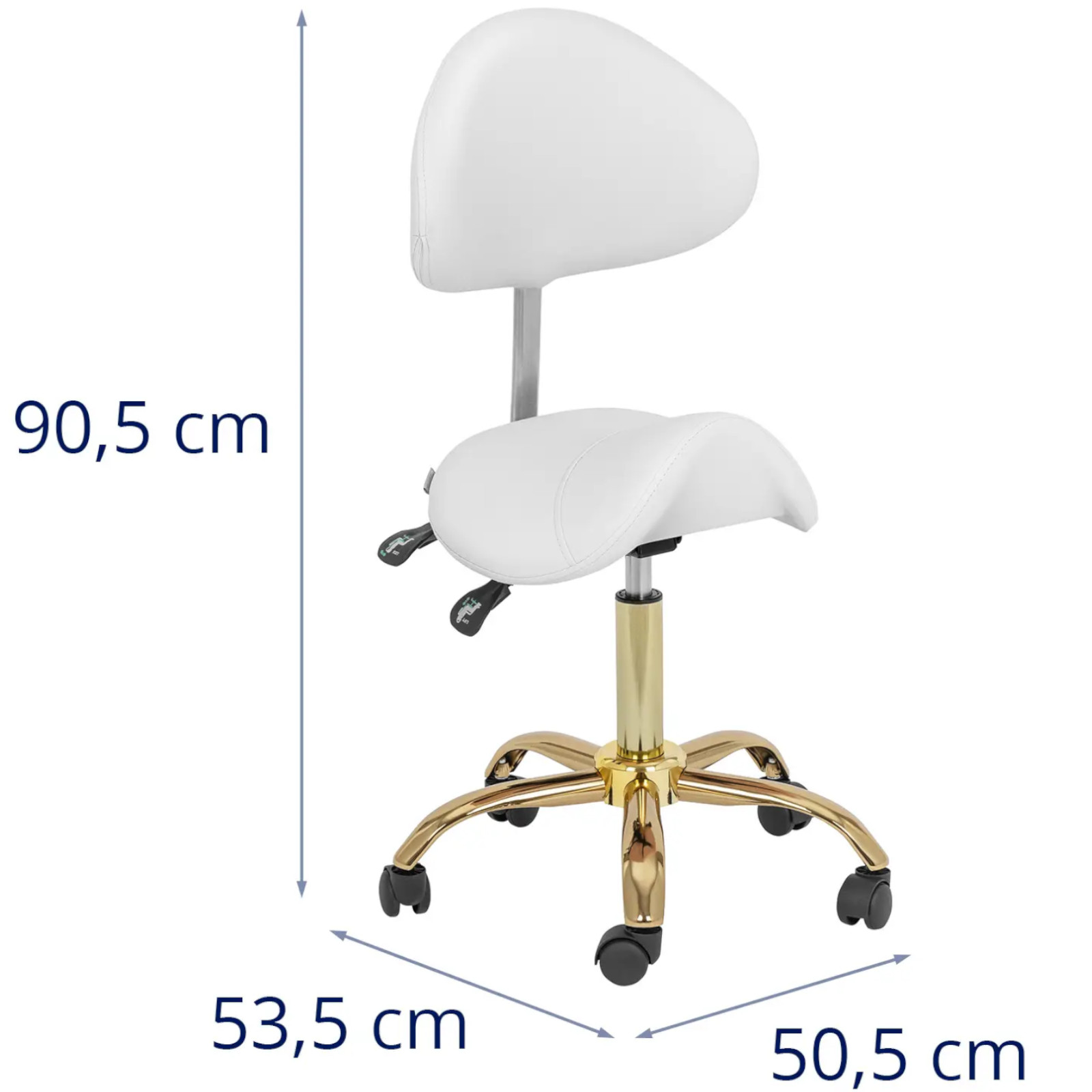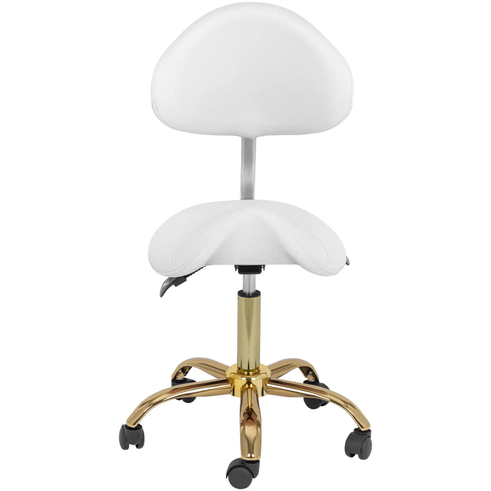 Krzesło kosmetyczne siodłowe z oparciem regulowane MANNHEIM biało-złote