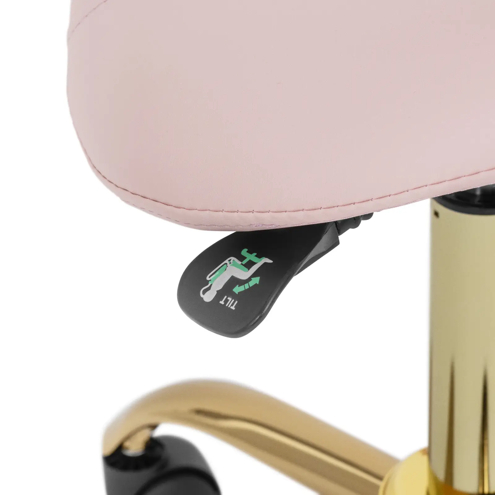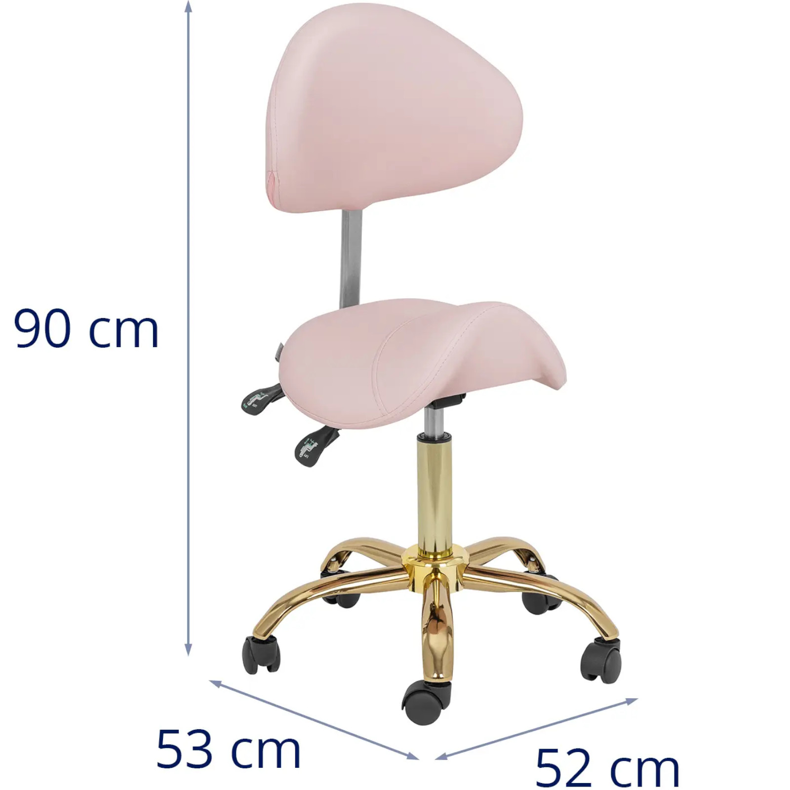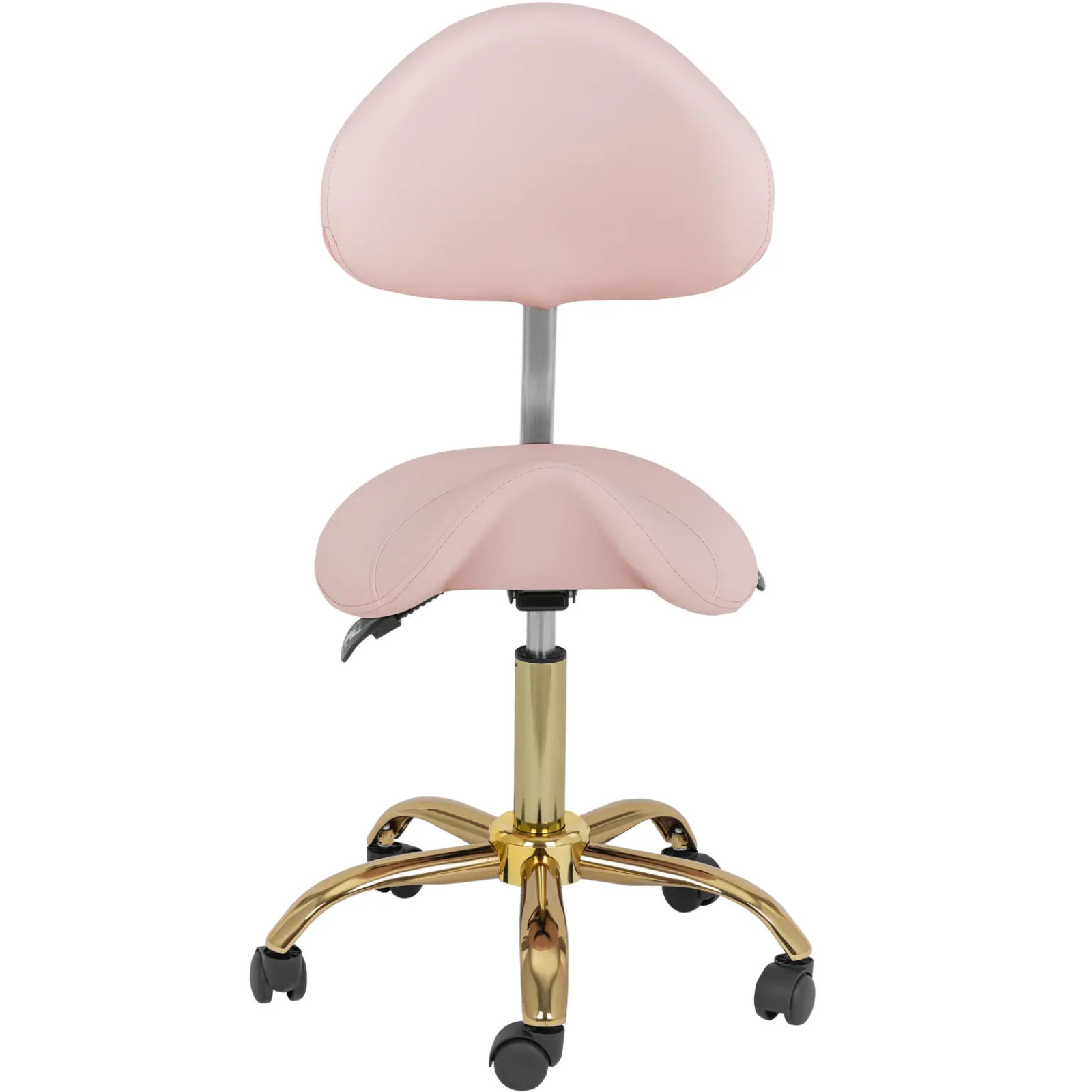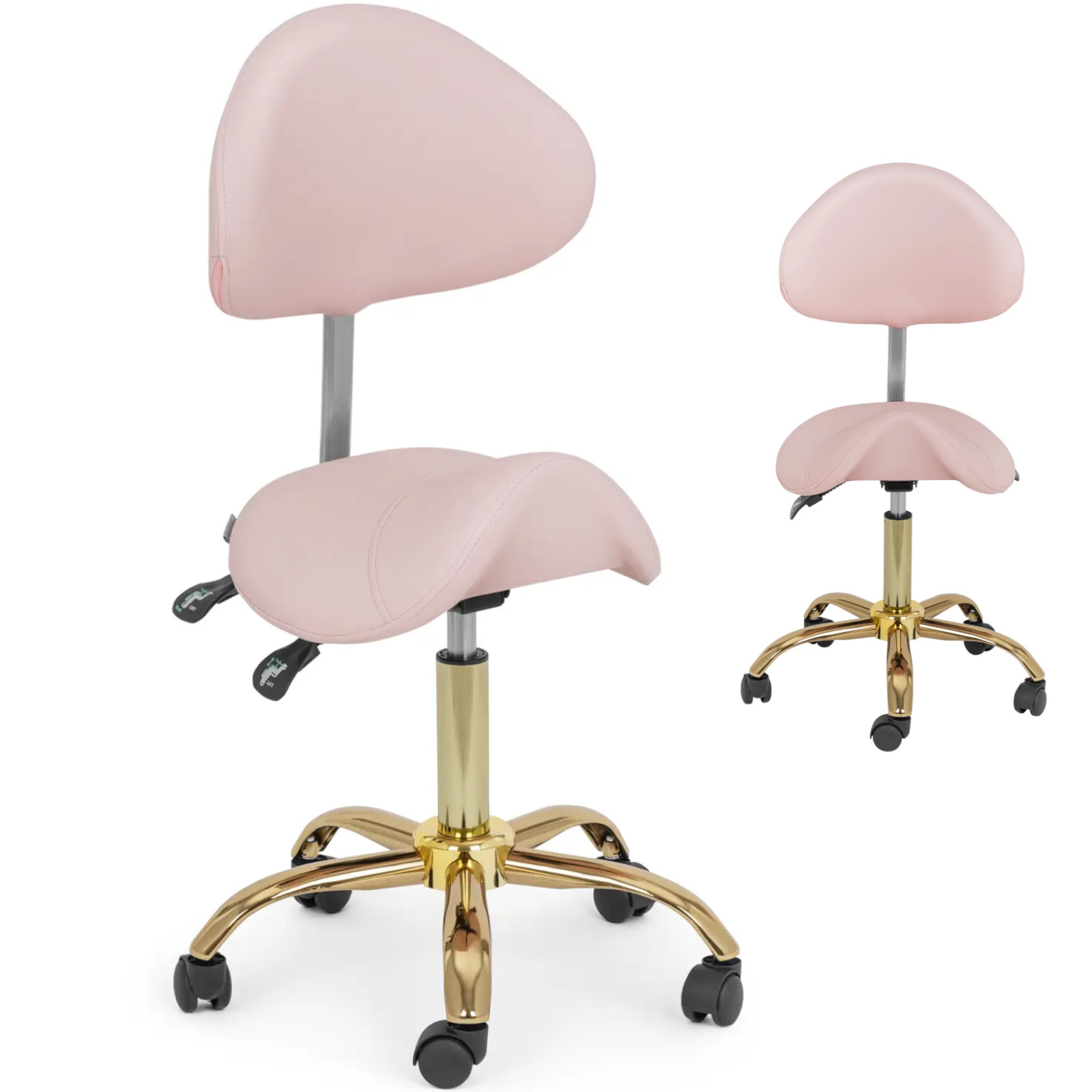 Krzesło siodłowe z oparciem marki physa wyposażone w skrętne, płynnie toczące się koła oraz różnorodne możliwości regulacji, dopasuje się do różnych potrzeb, zwłaszcza gdy potrzeba jednoczesnej ergonomii i stabilności. Zapewni wysoką mobilność nawet w małych pomieszczeniach. Stworzono je zgodnie z wysokimi standardami, dlatego jest bardzo trwałe. To, co sprawia, że ten taboret kosmetyczny jest uniwersalny, to fakt, że można użyć go na wiele sposobów, na przykład w studiach tatuażu, w centrach SPA i wellness, a także w domu lub w biurze. Krzesło siodłowe zapewni komfort dzięki możliwości odchylenia oparcia w zakresie 0 – 22° za pomocą dźwigni. Można zmienić też jego wysokość od 89 do 103 cm. Za pomocą sprężyny gazowej szybko i łatwo określa się wysokość siedziska w zakresie 55 – 69 cm. Gruba poduszka wypełniona pianką pokryta jest łatwą w pielęgnacji skórą PVC i zapewni maksymalny komfort. Pięć solidnych, obracających się o 360°, płynnie działających kółek gwarantuje maksymalną mobilność. Jednocześnie podstawa odpowiada za stabilność krzesła kosmetycznego. Wysokiej jakości materiały zapewniają solidną konstrukcję. Dlatego krzesło siodłowe zniesie maksymalne obciążenie 150 kg. Z kolei połączenie chromowanej stali i eleganckiego obicia daje stylowy i atrakcyjny wygląd.