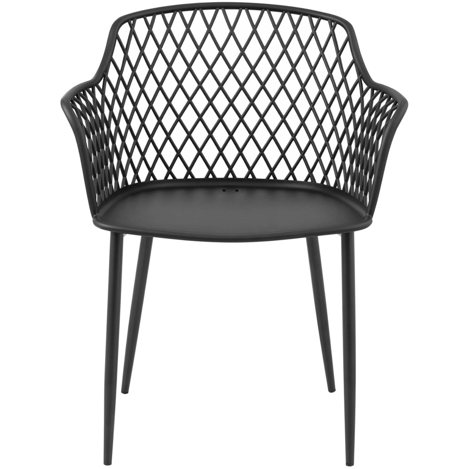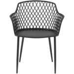 Krzesła wykonane zostały z wytrzymałego tworzywa sztucznego. Siedziska są bardzo wygodne. Czarne ażurowe oparcie zapewnia dobrą cyrkulację powietrza, zwłaszcza w letnie upały. Krzesło wytrzymuje obciążenie do 150 kg i nie skrzypi nawet przy maksymalnym obciążeniu. Zastosowane materiały takie jak polipropylen i stal są bardzo wytrzymałe, a także łatwe w pielęgnacji.