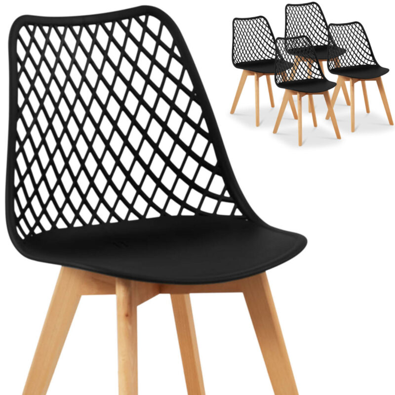 Krzesło skandynawskie z drewnianymi nogami do domu restauracji maks. 150 kg 4 szt. CZARNE