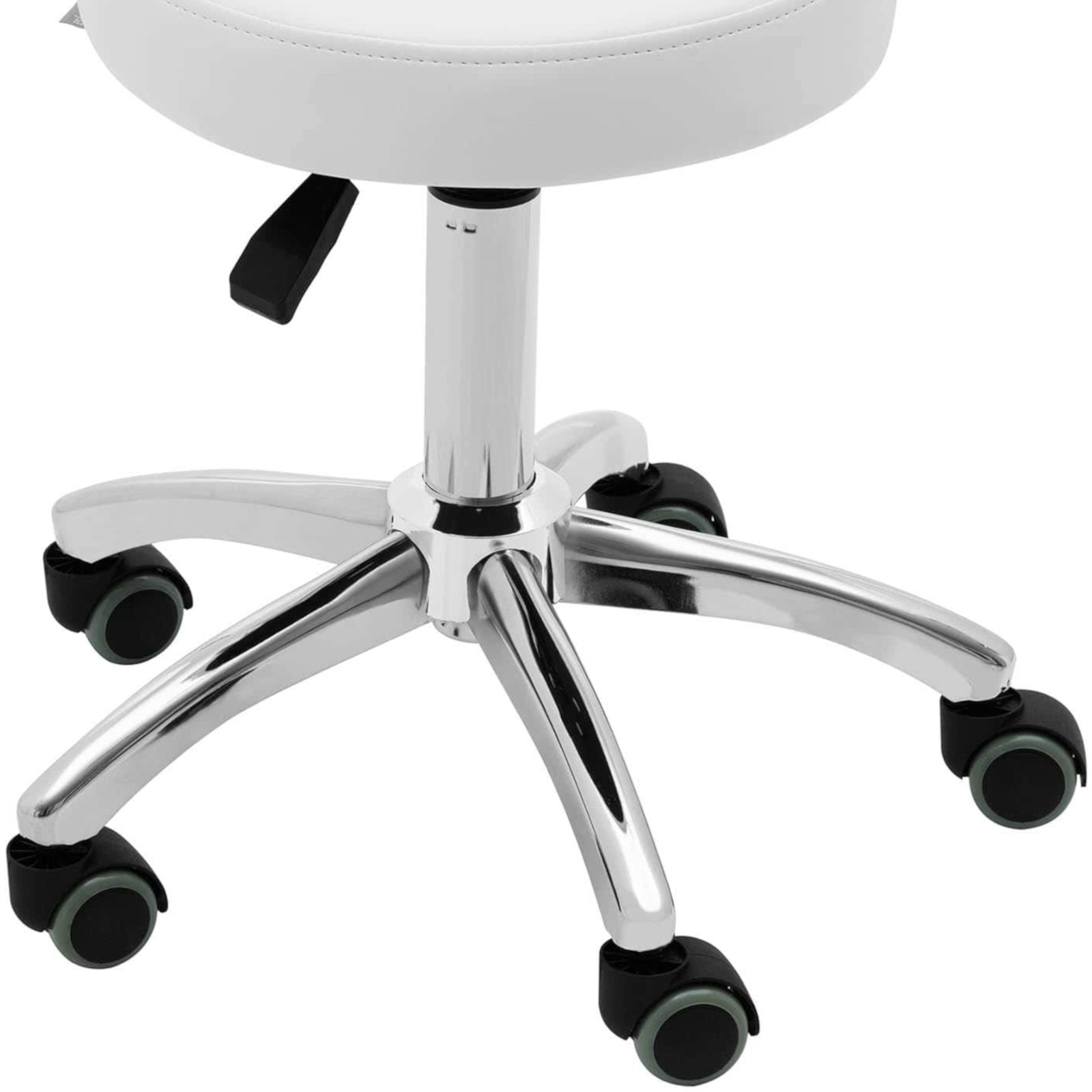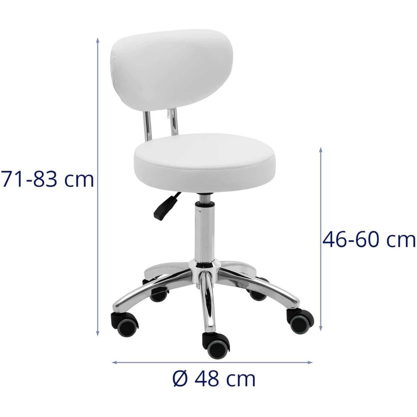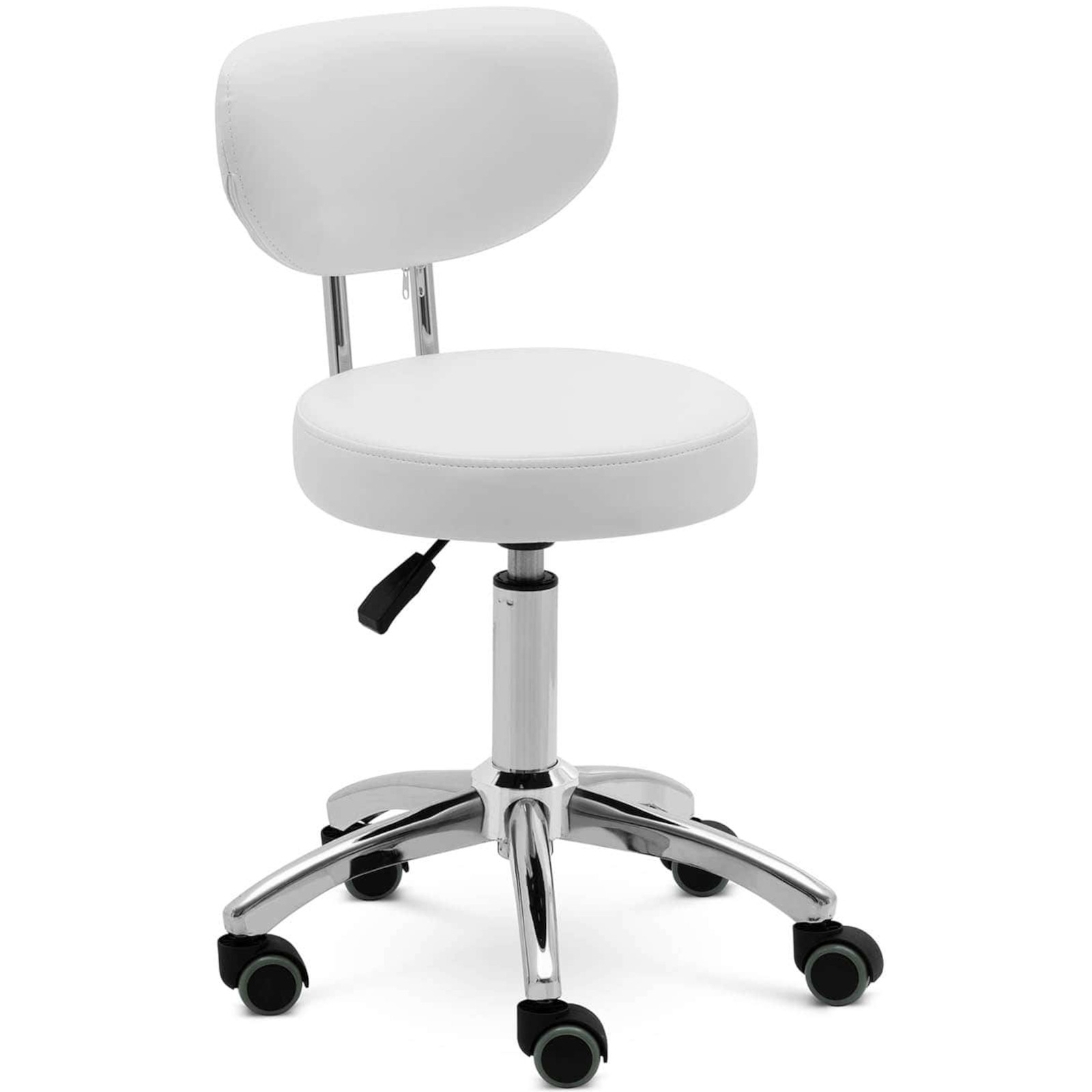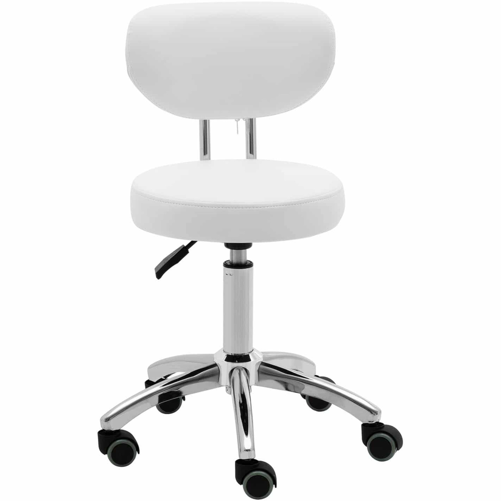 Krzesło taboret hoker kosmetyczny z oparciem na kółkach do 150 kg ASCONA biały