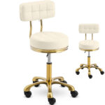 - – Taboret kosmetyczny z oparciem, kółkami, dużym siedziskiem i wygodnym obiciem,