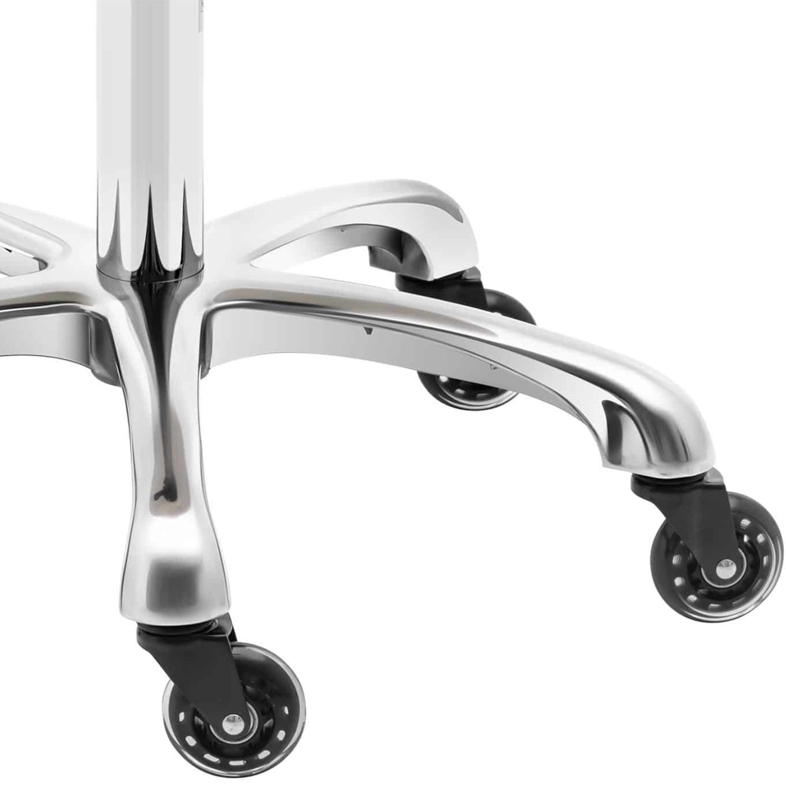 Krzesło kosmetyczne marki Physa sprawdzi się w salonie fryzjerskim, kosmetycznym czy gabinecie lekarskim. Pięć lekkobieżnych kółek pozwala płynnie przestawić krzesło. Wysokość jest regulowana w zakresie 540-720 mm za pomocą sprężyny gazowej. W razie potrzeby krzesło można obracać 360° wokół własnej osi. Tapicerowane siedzisko o średnicy 350 mm pozwala wygodnie siedzieć nawet przez długi czas. Oparcie także jest tapicerowane dla jeszcze większego komfortu. Nośność krzesła wynosi 150 kg. Pokrycie z syntetycznej skóry PVC jest odporne na kurz i wodę oraz łatwe w czyszczeniu.