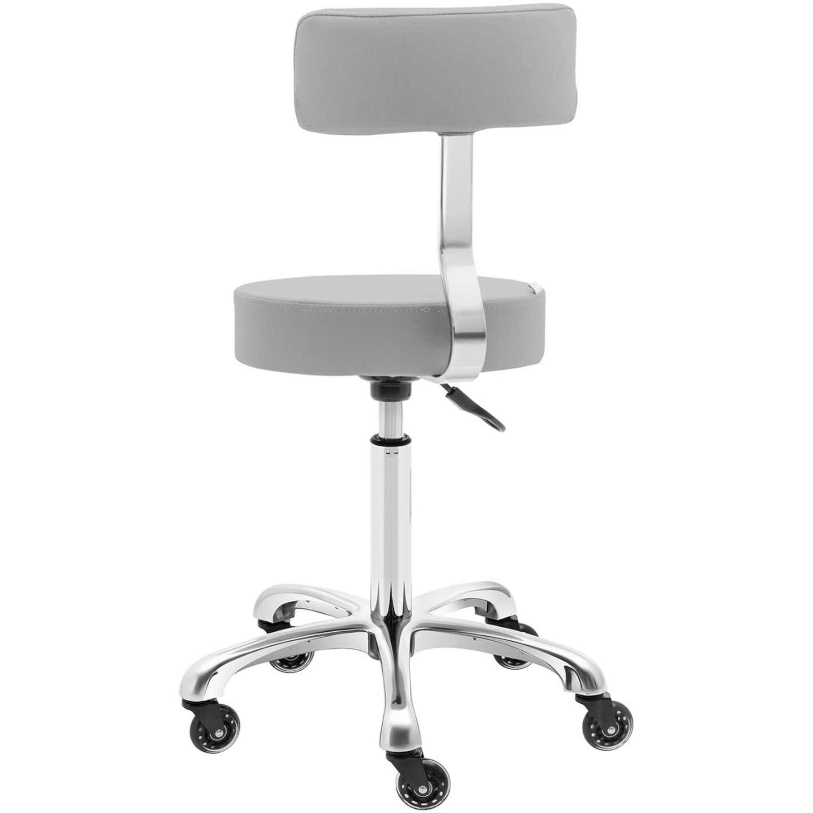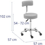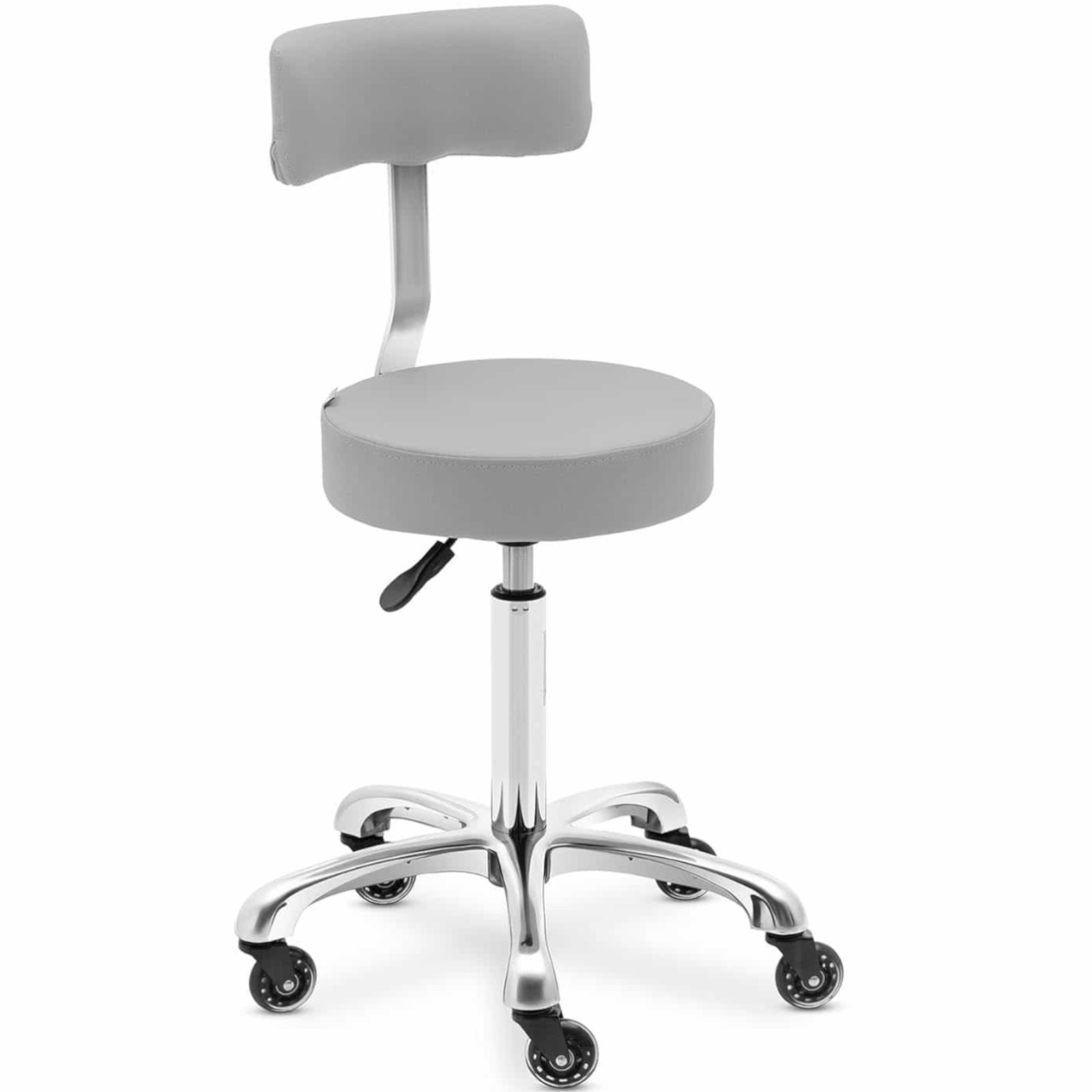 Krzesło marki Physa sprawdzi się w salonie fryzjerskim, kosmetycznym czy gabinecie lekarskim. Funkcjonalny design i subtelna kolorystyka idealnie pasują do każdego wnętrza. Pięć lekkobieżnych kółek pozwala wygodnie przemieszczać krzesło. Wysokość regulowana jest w zakresie 540 – 720 mm za pomocą sprężyny gazowej i obracana o 360° wokół własnej osi. Na tapicerowanym siedzisku o średnicy 350 mm możesz wygodnie siedzieć nawet przez długi czas. Oparcie także jest tapicerowane, co zapewnia jeszcze większy komfort. Jego nośność wynosi 150 kg. Zastosowane materiały, takie jak syntetyczna skóra PVC i stop aluminium, są łatwe do czyszczenia oraz odporne na kurz i wodę.