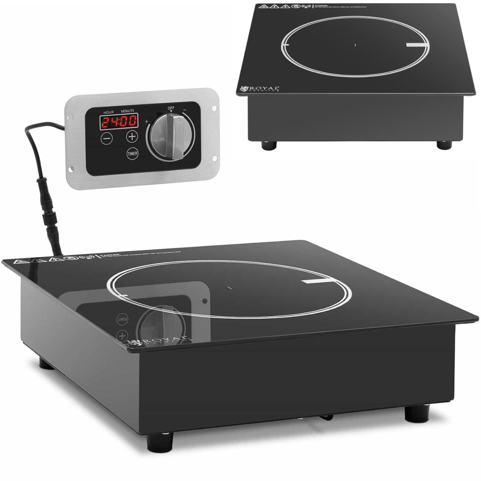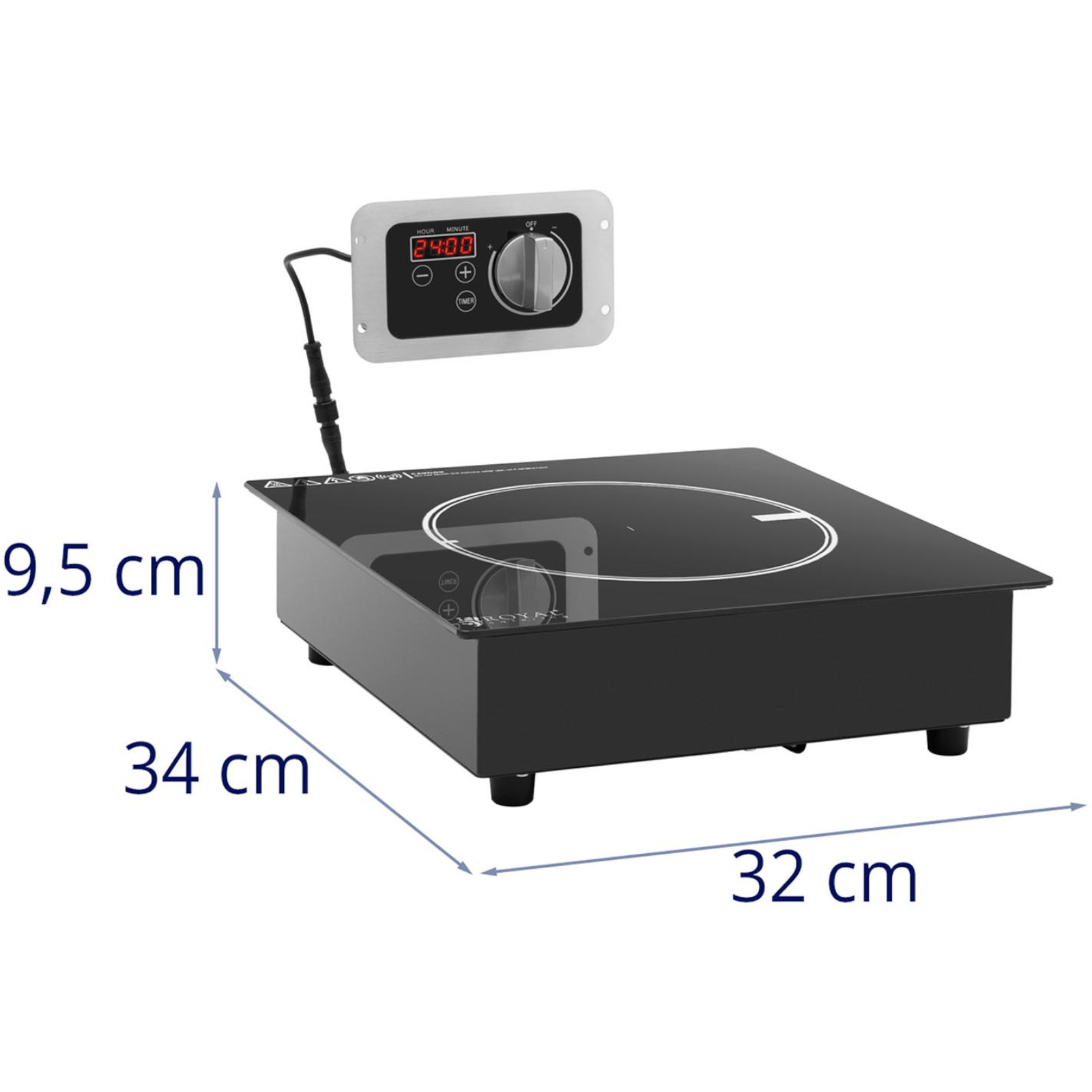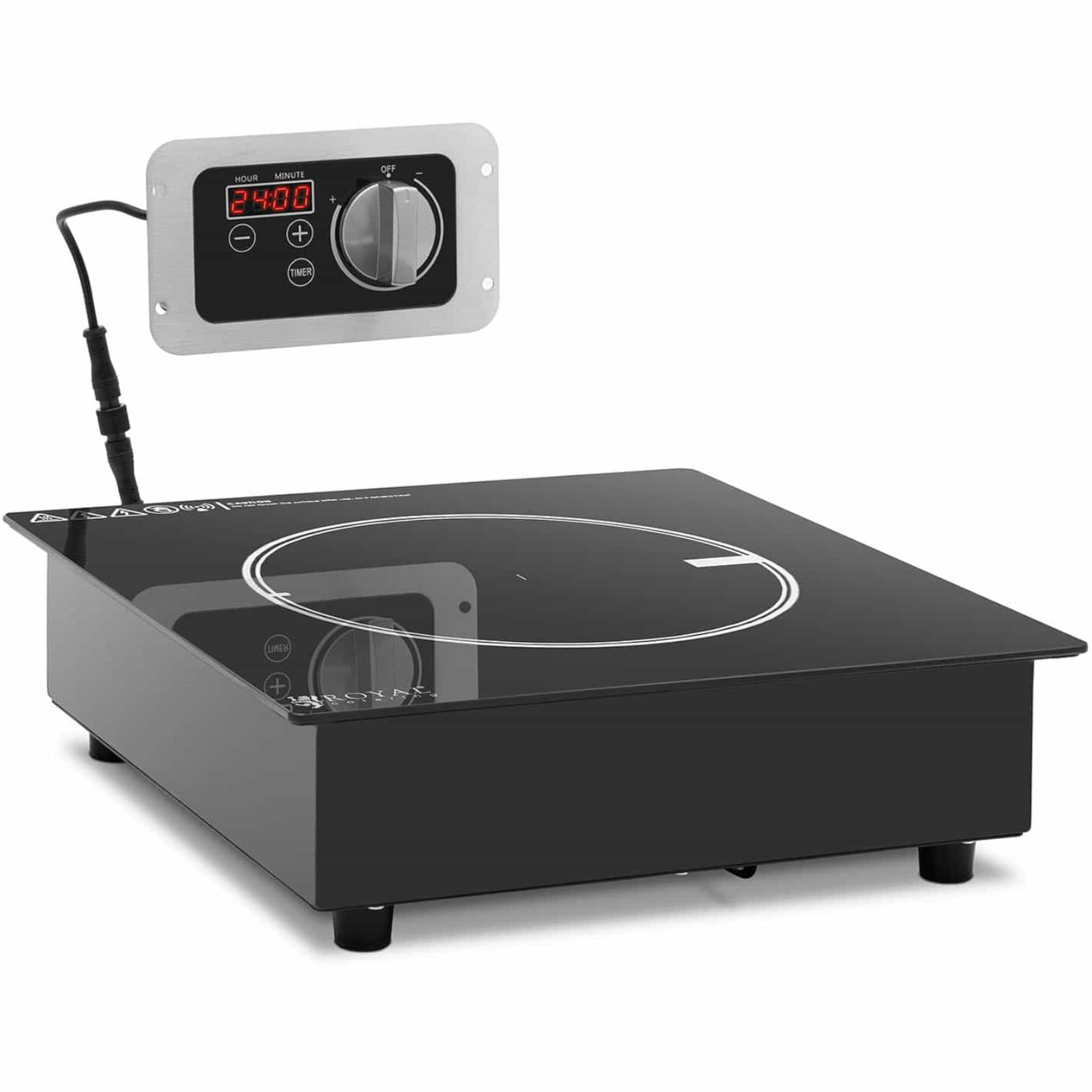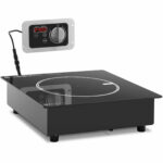 Kuchenka indukcyjna marki Royal Catering pozwala na gotowanie szybko, bezpiecznie i oszczędnie. Cewka przewodząca prąd generuje zmienne pole magnetyczne, które natychmiast podgrzewa garnki i patelnie, sama płyta pozostaje zimna. Powierzchnia do gotowania ma średnicę 17 cm, sprawdzi się do garnków i patelni o średnicy dna od 10 cm. Element grzewczy o mocy 3000 W osiąga żądaną temperaturę w bardzo krótkim czasie. Urządzenie posiada 10 poziomów mocy. Minutnik ma zakres do 24 godzin. Obudowę kuchenki wykonano ze stali nierdzewnej, płytę natomiast z ceramiki szklanej. Materiały te są odporne na wpływy zewnętrzne, łatwe w czyszczeniu i wyjątkowo trwałe.
