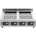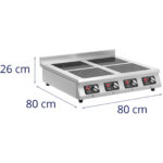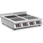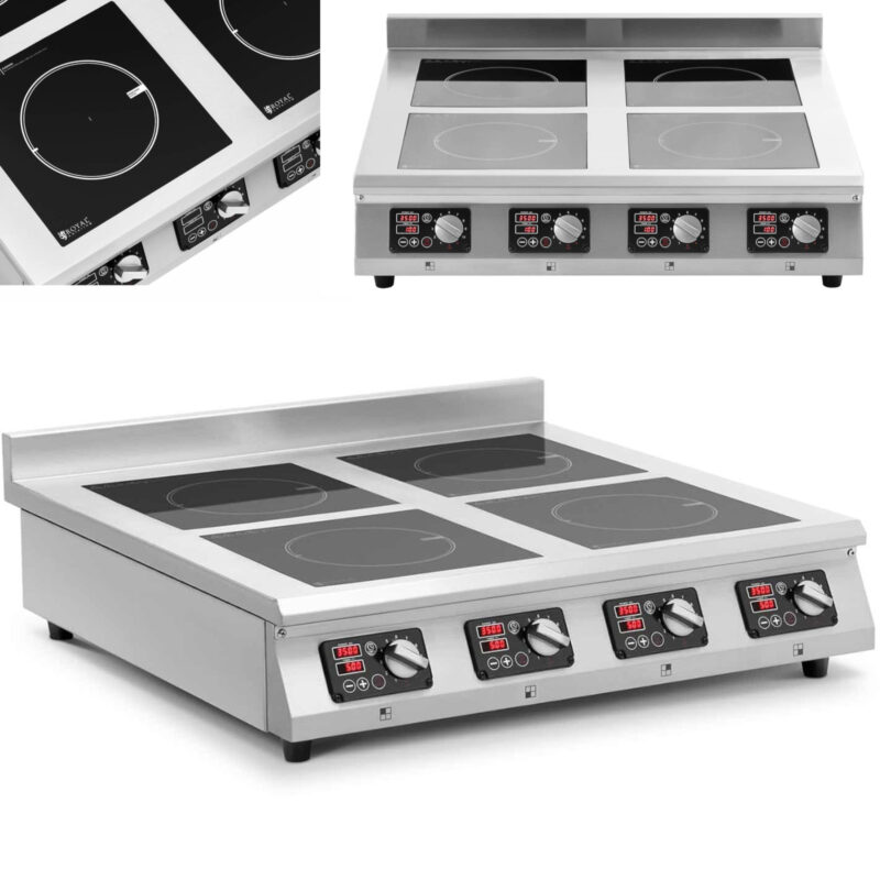 Kuchenka indukcyjna marki Royal Catering pozwala gotować szybko, energooszczędnie i bezpiecznie. Cewka przewodząca prąd generuje zmienne pole magnetyczne, które natychmiast podgrzewa garnki i patelnie, sama płyta pozostaje zimna. Cztery powierzchnie do gotowania ze szkła kryształowego posiadają 20 cm średnicy każda, sprawdzą się do garnków i patelni o średnicy do 28 cm. Elementy grzewcze o mocy 4 x 3500 W pozwalają na osiągnięcie żądanej temperatury w bardzo krótkim czasie. W kuchence zastosowano 10 poziomów mocy. Minutnik ustawiany jest w zakresie do 24 godzin. Automatyczne wyłączenie w trybie czuwania po 4 godzinach zwiększa bezpieczeństwo. Obudowę urządzenie wykonano ze stali nierdzewnej, powierzchnię płyty ze szkła kryształowego. Zastosowane materiały są odporne na wpływy zewnętrzne, łatwe w czyszczeniu i posiadają długa żywotność.