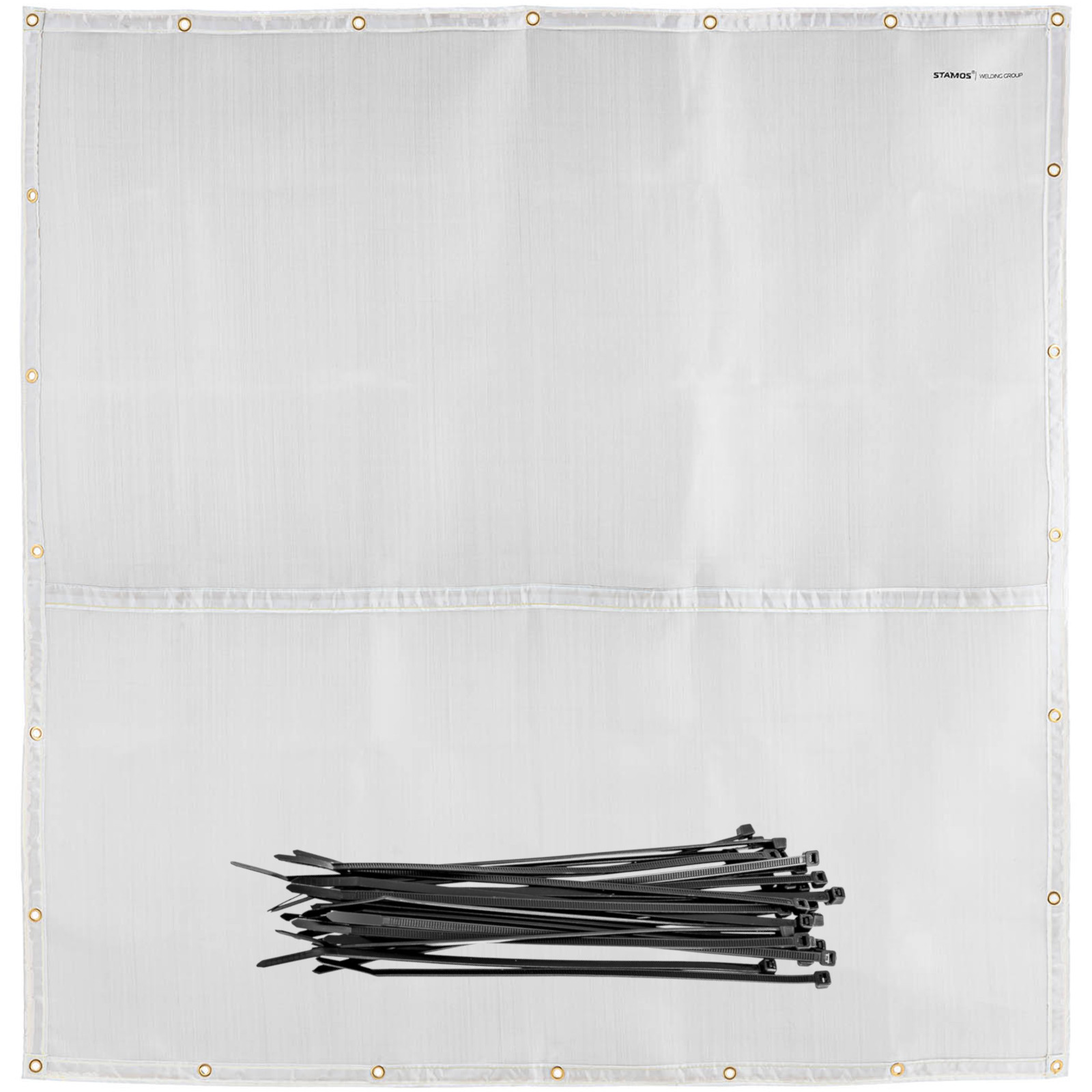 Koc spawalniczy marki Stamos Welding Group to obszerna płachta wykonana z włókna szklanego, łapie iskry, płomienie oraz odpryski żużlu. Idealnie nadaje się do wszelkich prac wymagających użycia wysokiej temperatury. Rozmiar 176 x 177 cm pozwala oddzielić od siebie poszczególne stanowiska pracy. Koc wytrzyma temperatury do 1000°C bez topienia. Przez krótki czas, około 10 s zniesie nawet 1700°C. Na krawędziach koca znajdują się mosiężne oczka, które służą do łatwego zawieszenia.
