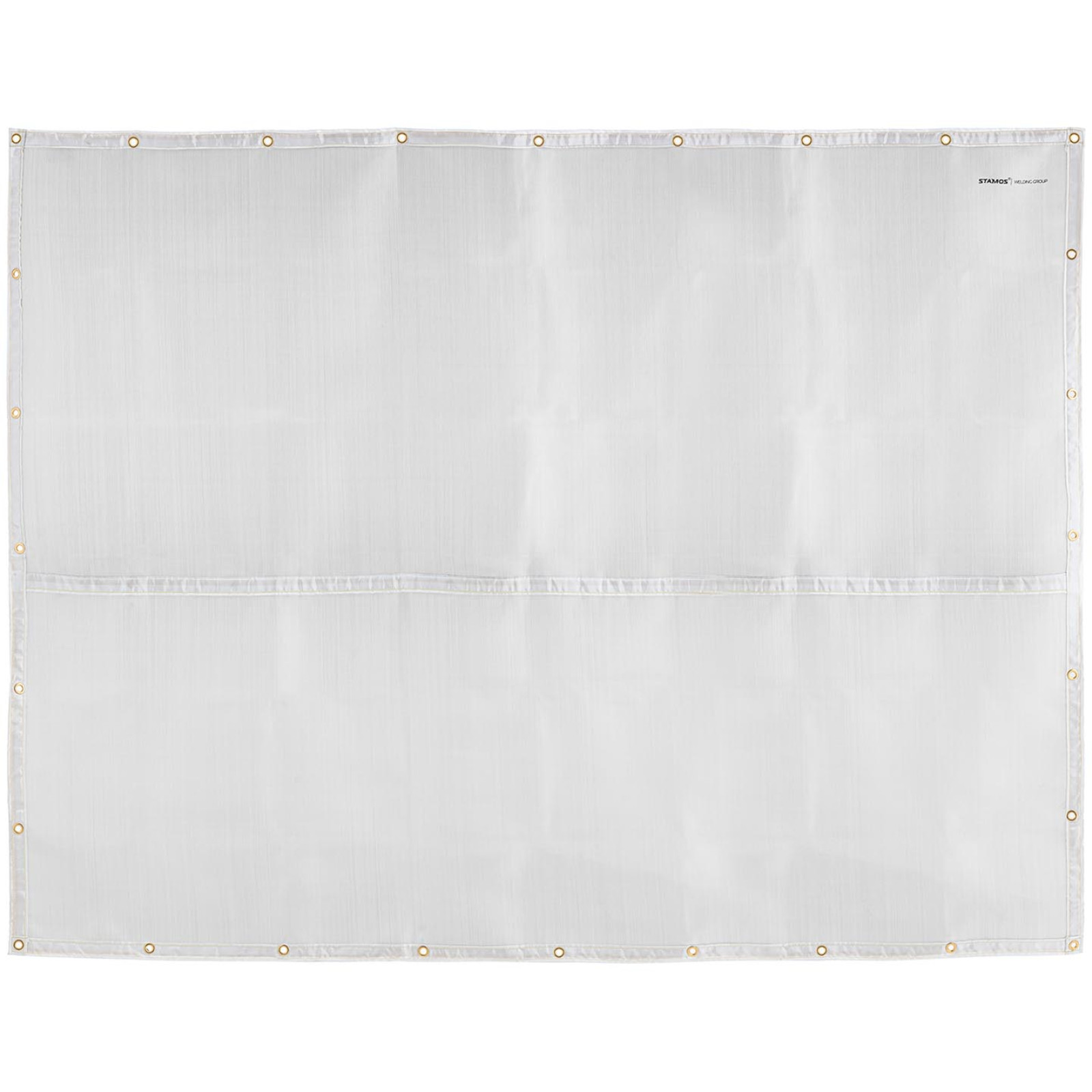 Koc spawalniczy marki Stamos Welding Group to obszerna płachta wykonana z włókna szklanego, łapie iskry, płomienie oraz odpryski żużlu. Idealnie nadaje się do wszelkich prac wymagających użycia wysokiej temperatury. Rozmiar 236 x 174 cm pozwala oddzielić od siebie poszczególne stanowiska pracy. Koc wytrzyma temperatury do 1000°C bez topienia. Przez krótki czas, około 10 s zniesie nawet 1700°C. Na krawędziach koca znajdują się mosiężne oczka, które służą do łatwego zawieszenia.