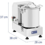 Kuter gastronomiczny marki Royal Catering pozwala posiekać lub zmiksować warzywa, mięso czy zioła, aby szybko i skutecznie przygotować zupy, pasztety lub podobne potrawy. Moc wyjściowa wynosi 1200 W a prędkość obrotowa 1600 – 3200 obr./min. Misa urządzenia wykonana jest z wytrzymałej stali nierdzewnej i zachwyca wysokiej jakości wykończeniem. Gładkie powierzchnie są łatwe w czyszczeniu. Nóż do siekania pozwala niezawodnie rozdrobnić wszystkie produkty spożywcze z dużą prędkością. Jakość wykonania ostrza zawsze gwarantuje idealne cięcie bez negatywnego wpływu na obrabiany produkt. Wyjmowane naczynie ma pojemność 6 l, można w nim przetworzyć do 4.8 l jedzenia. Plastikowa osłona chroni przed zachlapaniem podczas pracy. Urządzenie obsługuje się za pomocą przycisku. Cztery antypoślizgowe gumowe nóżki zapewniają odpowiednią stabilność przy maksymalnej prędkości. Ze względów bezpieczeństwa ostrza poruszają się tylko wtedy, gdy pojemnik jest mocno przymocowany do urządzenia.