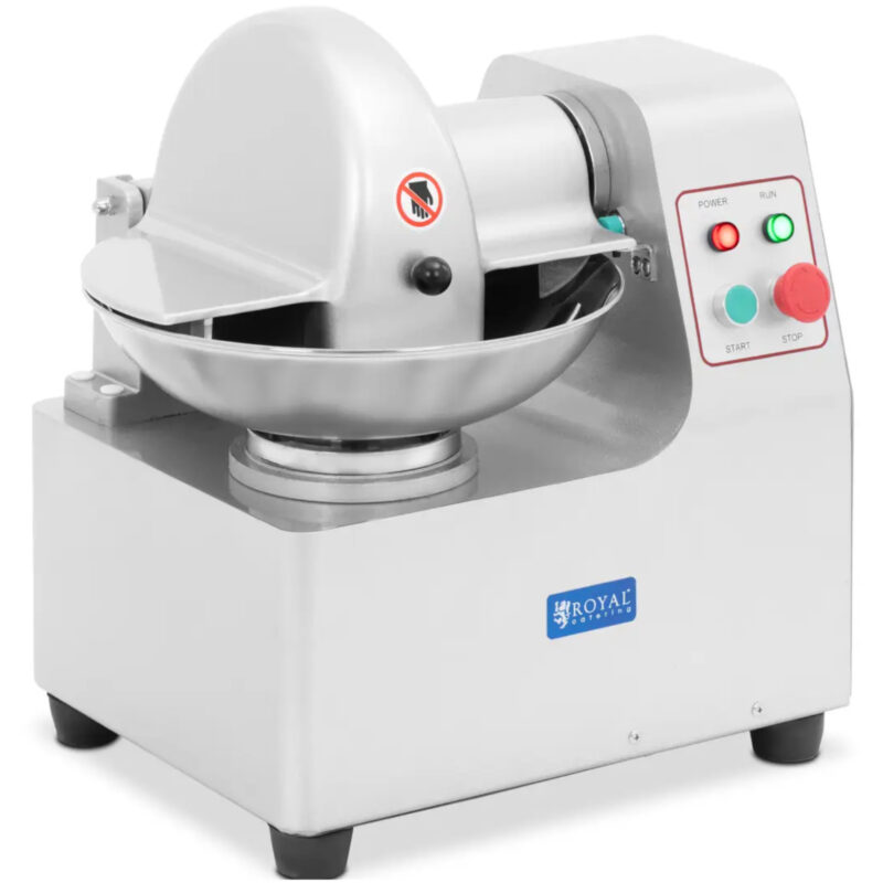 Kuter gastronomiczny marki Royal Catering posiada moc 550 W i prędkość obrotową 1360 obr./min, pozwala przetworzyć nawet duże ilości jedzenia w mgnieniu oka. Misa o średnicy 35 cm jest wykonana z wytrzymałej stali nierdzewnej i ma wysokiej jakości wykończenie. Gładkie powierzchnie są łatwe w czyszczeniu. Równie łatwo usunąć resztki jedzenia z ostrza o długości 24 cm zamontowanego wewnątrz pojemnika. Nóż do siekania pozwala niezawodnie rozdrobnić wszystkie produkty spożywcze z dużą prędkością. Jakość wykonania ostrza zawsze gwarantuje idealne cięcie bez negatywnego wpływu na obrabiany produkt. Zdejmowany zbiornik do przygotowywania oferuje pojemność 5 l. Osłona chroni przed zachlapaniem podczas pracy. Aby dodać składniki, należy wrzucić je przez otwór na krawędzi pokrywki. Podniesienie pokrywki powoduje, że maszyna zostanie natychmiast wyłączona. W sytuacjach zagrożenia można też skorzystać z wyłącznika awaryjnego.