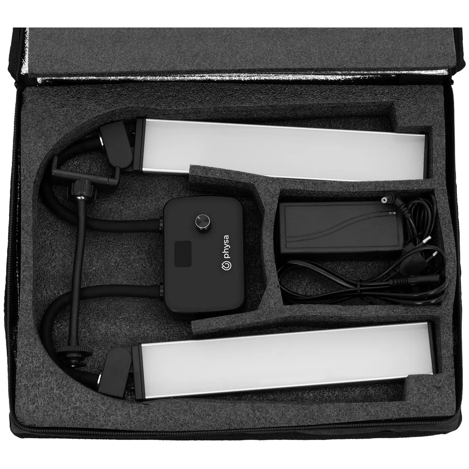 Lampa kosmetyczna marki physa zapewni optymalne oświetlenie do przedłużania rzęs i nie tylko. Barwę światła lampy LED można ustawić bezstopniowo między 3200 – 5600 K. Dzięki temu można oświetlić studio od ciepłej przez neutralną biel do światła dziennego. Urządzenie nadaje się do profesjonalnej pracy w salonach kosmetycznych i fryzjerskich, studiach tatuażu, a także podczas sesji zdjęciowych i filmowych. Lampę kosmetyczną z dwoma elastycznymi ramionami zaprojektowano w taki sposób, aby nie tworzyć cieni, dzięki czemu twarz jest optymalnie oświetlona. Zakrzywiona głowica jest bardzo szeroka i prawie w całości wypełniona diodami LED. W ten sposób światło pada na twarz zarówno z góry, jak i z boków. Ułatwia to nakładanie makijażu i delikatne prace, takie jak przedłużanie rzęs. Mieszanie kolorów również jest łatwe za sprawą optymalnego oświetlenia. Dwa ruchome ramiona lampy można ustawić indywidualnie według potrzeb. W ten sposób precyzyjnie można oświetlić różne obszary twarzy, takie jak oczy, usta, policzki itp. 224 jasnych i ekonomicznych diod LED zapewnia odpowiednie oświetlenie miejsca pracy przez całe 50000 godzin. W praktycznym uchwycie na telefon łatwo i bezpiecznie można przymocować smartfon, więc ręce pozostają wolne do makijażu. Jest to idealne rozwiązanie do robienia zdjęć lub nagrywania filmów instruktażowych czy transmisji na żywo. Lampa jest wykonana z lekkiego aluminium i wytrzymałego żelaza, a jej wysokość można ustawić w zakresie od 80 do 180 cm.