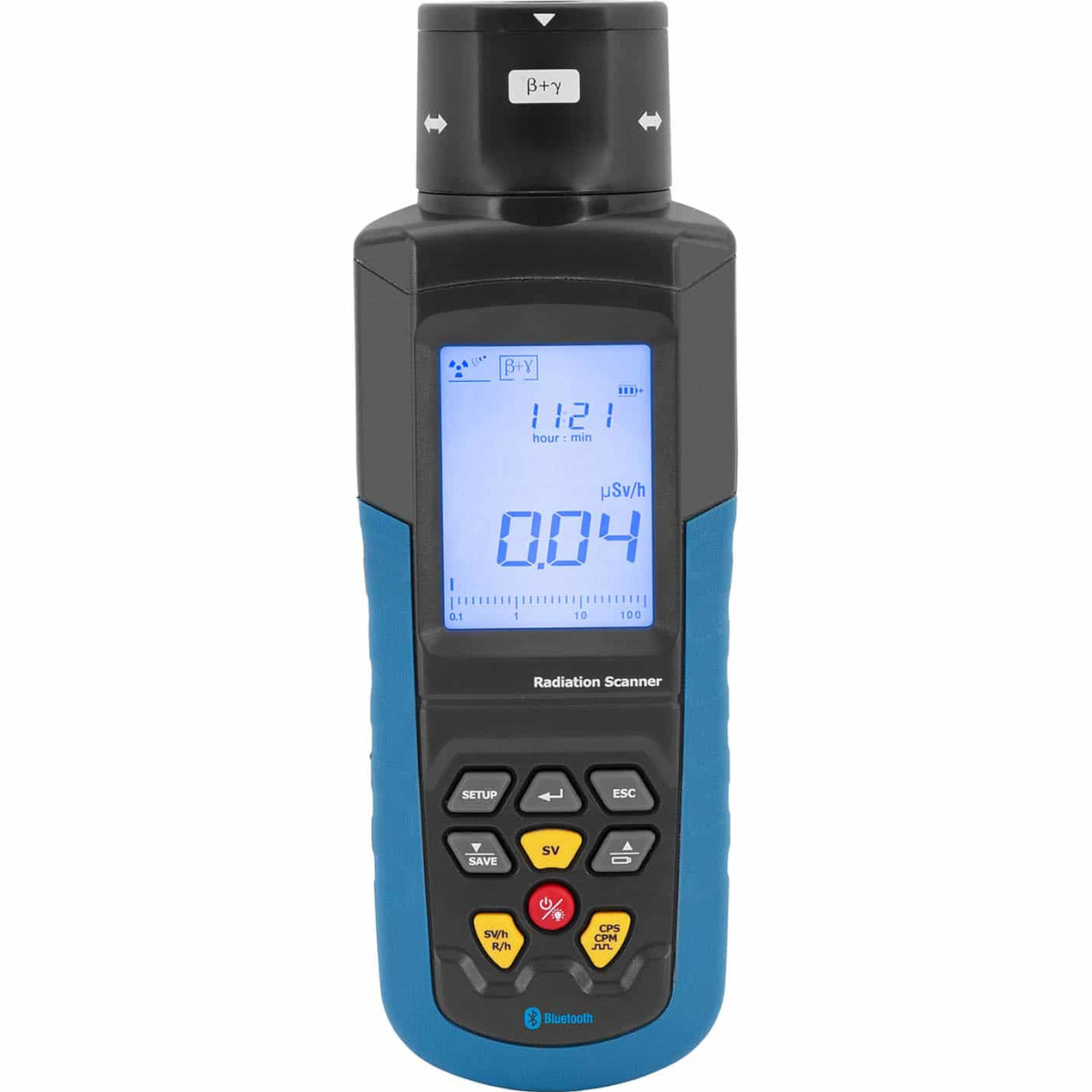 Licznik Geigera marki Steinberg Systems pozwala skutecznie zmierzyć nawet małe dawki promieniowania z dużą dokładnością pomiaru. Sprawdzi się w geologii, technologii ochrony środowiska, przemyśle farmaceutycznym, w elektrowniach jądrowych i wszędzie tam, gdzie podejrzewa się nadmierny poziom radioaktywności. Zakres pomiarowy urządzenia wynosi 0,001 μSv – 9999 Sv. Ekran LCD z wyświetlaczem słupkowym pozwala zobaczyć zarejestrowane wartości. Do wyboru są promieniowanie α, β, γ oraz promieniowanie rentgenowskie. W środowisku promieni Cobalt-60 urządzenie oferuje czułość od 4 MeV dla promieni α, 0,2 MeV dla promieni β, 0,02 MeV dla promieni γ i 0,02 MeV dla promieni rentgenowskich. Ustaw granicę, którą dźwięk alarmu wyraźnie wskaże po przekroczeniu. Pamięć wewnętrzna pozwala zapisać do 4000 odczytów zarejestrowanej radioaktywności. Czas trwania można określić od 2 do 12 s. Interfejs Bluetooth o zasięgu 10 m umożliwia szybkie przesyłanie danych a dołączone oprogramowanie pozwala analizować i przechowywać wszystkie zebrane informacje. Obudowa urządzenia wykonana została z tworzywa sztucznego i gumy. 4 baterie 1,5 V AA zasilają miernik. Poziom naładowania można sprawdzić na wyświetlaczu w dowolnym momencie.