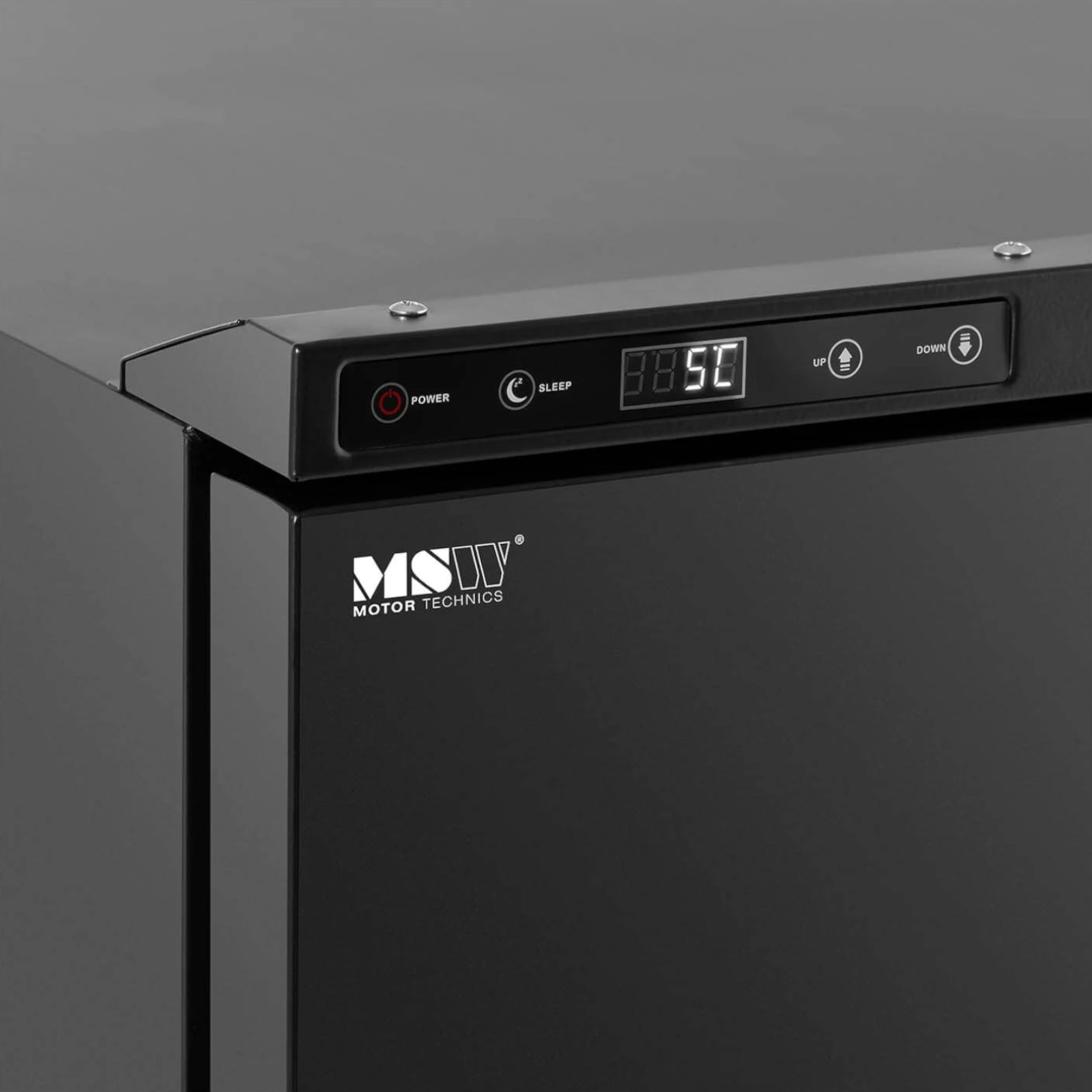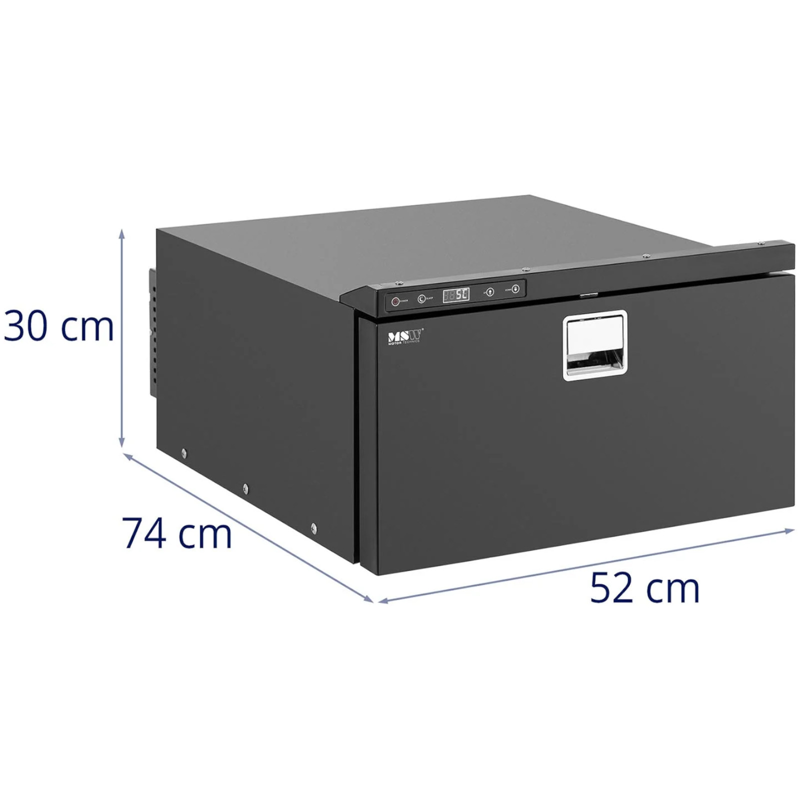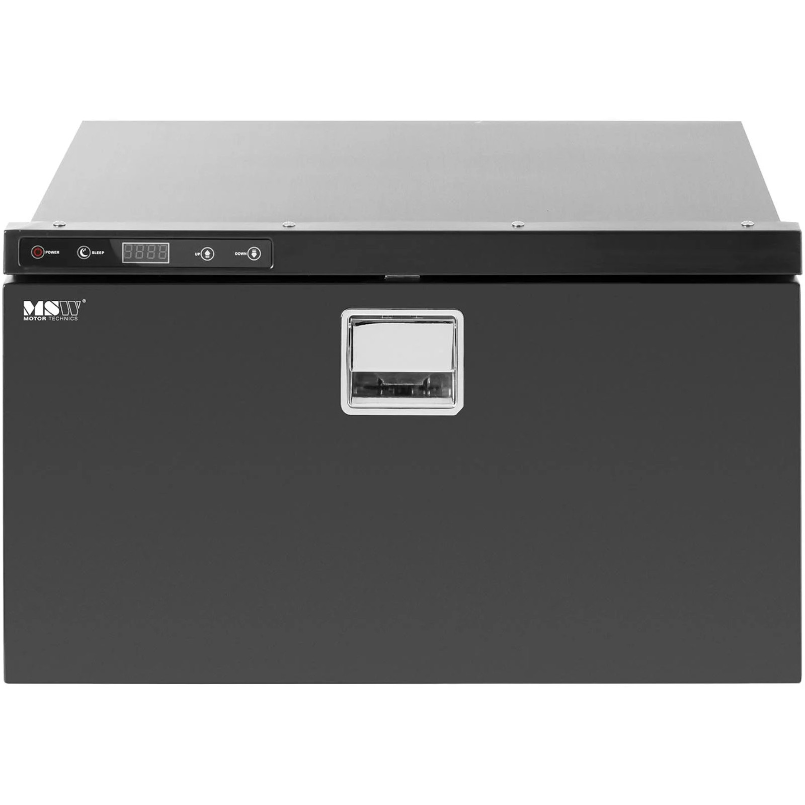 Lodówka samochodowa marki MSW sprawdzi się w autach osobowych, ciężarówkach, przyczepach kempingowych itp. Posiada złącze 12 V. Zakres temperatur -12-10°C pozwala zarówno na schładzanie napojów, jak i do lodów oraz do transportu mrożonej żywności. Lodówka działa z mocą 45 W, Temperaturę ustawia się intuicyjnie. Duże wnętrze 40 l w formie szuflady oferuje dużo miejsca do wykorzystania. Obudowa o wymiarach 74 x 52 x 30 cm wykonana została ze stali, jest odporna na czynniki zewnętrzne, łatwa w czyszczeniu i posiada długą żywotność.