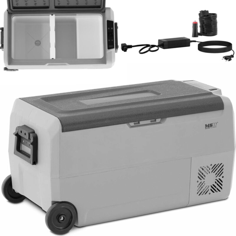 Lodówka/zamrażarka samochodowa marki MSW najlepiej sprawdzi się w podróży w samochodzie osobowym, ciężarowym, łodzi lub przyczepie kempingowej. Złącze 12/24 V (DC) / 100 – 240 V (AC) utrzymuje stałą temperaturę, dodatkowo komorę mozna podzielić na dwa oddzielne regulowane zakresy temperatur. Lodówkę można zasilać również poprzez odpowiedni akumulator lub moduł solarny. Kompaktowe rozmiary obudowy (57 x 32 x 25 cm) wykonanej z polietylenu o dużej gęstości (HDPE). Zakres temperatur wynosi od -20°C do +20°C, jest wydajna i niezawodna dzięki mocy wyjściowej 80 W i solidnej uszczelce. Cyfrowy panel umożliwia ustawienie żądanej temperatury i wybór pomiędzy dwoma poziomami mocy Max lub ECO w komorze 36 l