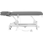 Łóżko do masażu marki Physa jest idealnym wyposażeniem w gabinecie, salonie lub w obiektach SPA & Wellness, zwłaszcza dla fizjoterapeutów, masażystów lub kosmetyczek. Stół do masażu posiada bardzo stabilną konstrukcję. Został wyposażony w pilota zdalnego sterowania wraz z wieszakiem i uchwyt na rolkę papieru. Łóżko posiada silnik o mocy 50 W, regulujący wysokość w zakresie 440-900 mm za pomocą ręcznego pilota lub pedału nożnego. Zagłówek można przechylać w zakresie -60 – 35°. Pozycję siedzącą lub leżącą opcjonalnie wyregulujesz w zależności od rodzaju zabiegu. Zagłówek posiada zdejmowaną poduszkę. Wypełnienie tapicerki posiada grubość: siedzisko: 80 / oparcie: 80 / podgłówek: 35 mm. Zastosowana skóra syntetyczna sprawia, że leżankę do masażu można szybko i łatwo wyczyścić. Nie wchłania ona płynów ani kurzu. Wysokiej jakości metal z powłoką proszkową i stabilna konstrukcja zapewniają stołowi wytrzymałość i maksymalną nośność 200 kg. Cztery kółka pozwalają na łatwe przesuwanie łóżka.