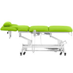 Łóżko do masażu marki Physa sprawdzi się w gabinecie fizjoterapii, kosmetycznym, studiu masażu oraz w obiektach SPA & Wellness. Specjalna konstrukcja, różne funkcje np. regulacja kąta nachylenia oparcia oraz ergonomiczny kształt są idealnie dopasowane do potrzeb zarówno klienta, jak i terapeuty. Łóżko charakteryzuje się bardzo solidną konstrukcją o dobrej stabilności. Wyposażone zostało w pilot zdalnego sterowania oraz uchwyt na rolkę papieru. Stół posiada trzy silniki o łącznej mocy 68 W. Jego wysokość jest regulowana w zakresie 640-868 mm, a kąt oparcia (55°). Regulowany jest także kąt siedziska. Dodatkowo zagłówek posiada zdejmowaną poduszkę. Za sprawą różnych grubości piankowego wypełnienia (60-80 mm) oraz przyjemnego w dotyku obicia ze skóry syntetycznej, łóżko do masażu jest niezwykle wygodne i gwarantuje wysoki komfort podczas trwania zabiegu. Dzięki skórze syntetycznej stół do masażu można szybko i łatwo wyczyścić. Obicie nie wchłania płynów ani kurzu. Solidna konstrukcja z wysokiej jakości stali malowanej proszkowo sprawia, że mebel jest wytrzymały i oferuje maksymalną nośność 250 kg. Cztery kółka pozwalają na łatwe przesuwanie łóżka. Uchwyty na pilota i rolkę papieru zapewniają dodatkową wygodę.