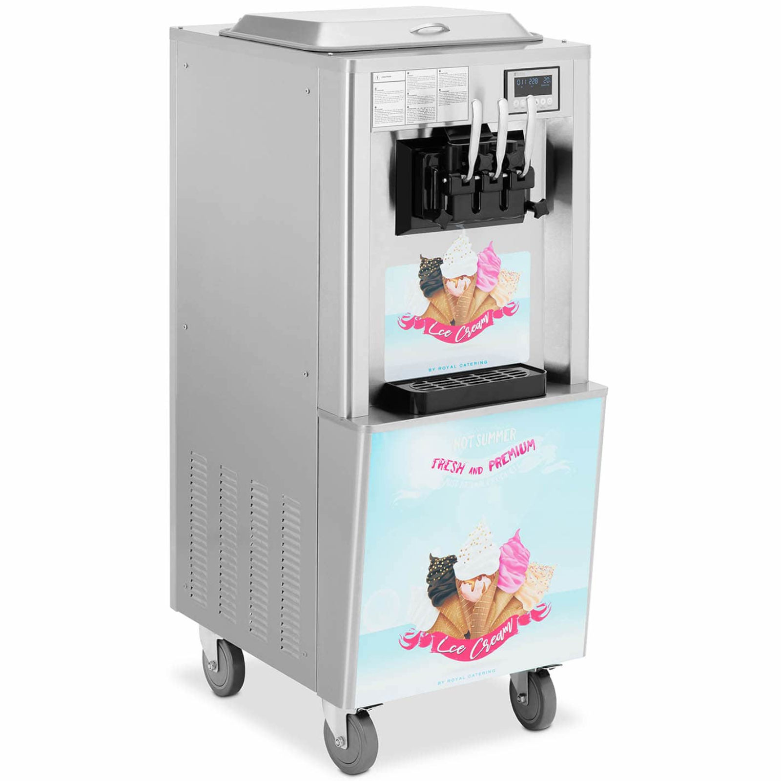 Maszyna do lodów włoskich marki Royal Catering idealnie nadaje się do barów, lodziarni, kawiarni i na festyny. Potężne urządzenie z mocą 2140 W wyprodukuje lody w dwóch różnych smakach, które można zmieszać, aby uzyskać łącznie 3 smaki, w ciągu kilku minut. W ciągu godziny maszyna o pojemności całkowitej 16 l wyprodukuje 33 l lodów, sorbetu lub mrożonego jogurtu. Za pomocą cyfrowego panelu sterowania można wprowadzić żądane wartości. Pokrywa chroni masę lodową przed zabrudzeniem i utrzymuje stabilną temperaturę wewnątrz urządzenia. Obudowa maszyny wykonana jest ze stali nierdzewnej, co sprawia, że jest wytrzymała i idealnie nadaje się do żywności. Maszyna jest mobilna, dzięki 4 solidnym kółkom można przetoczyć ją w dowolne miejsce, a hamulce do blokowania zapewnią stabilność urządzenia.