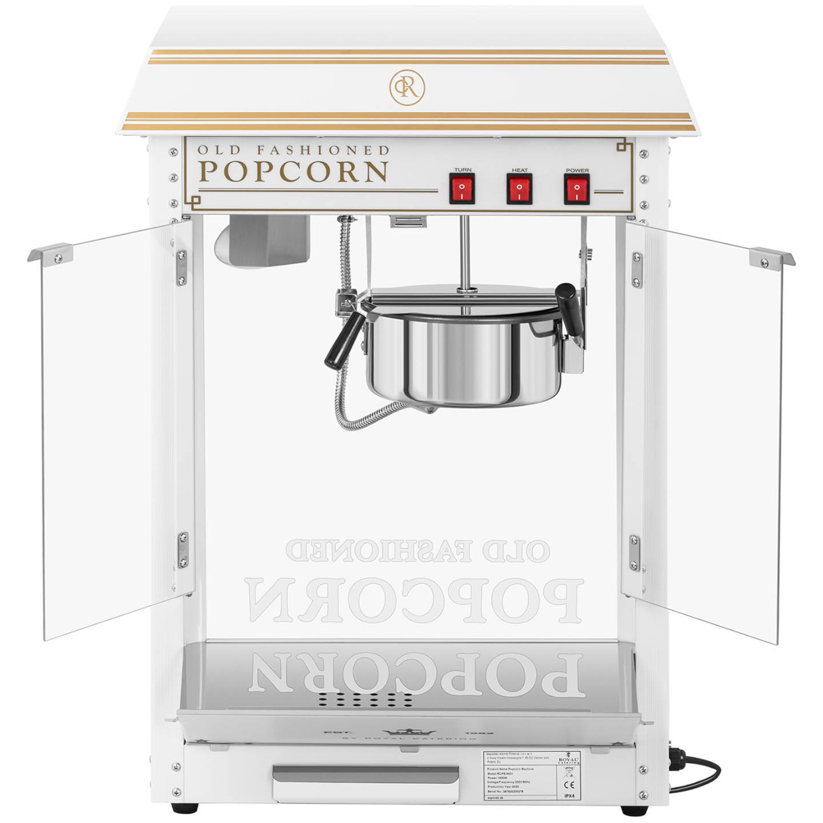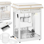 Maszyna automat urządzenie do prażenia popcornu retro TEFLON 1600 W 5-6 kg/h – biało-złota