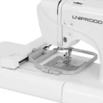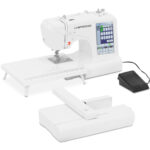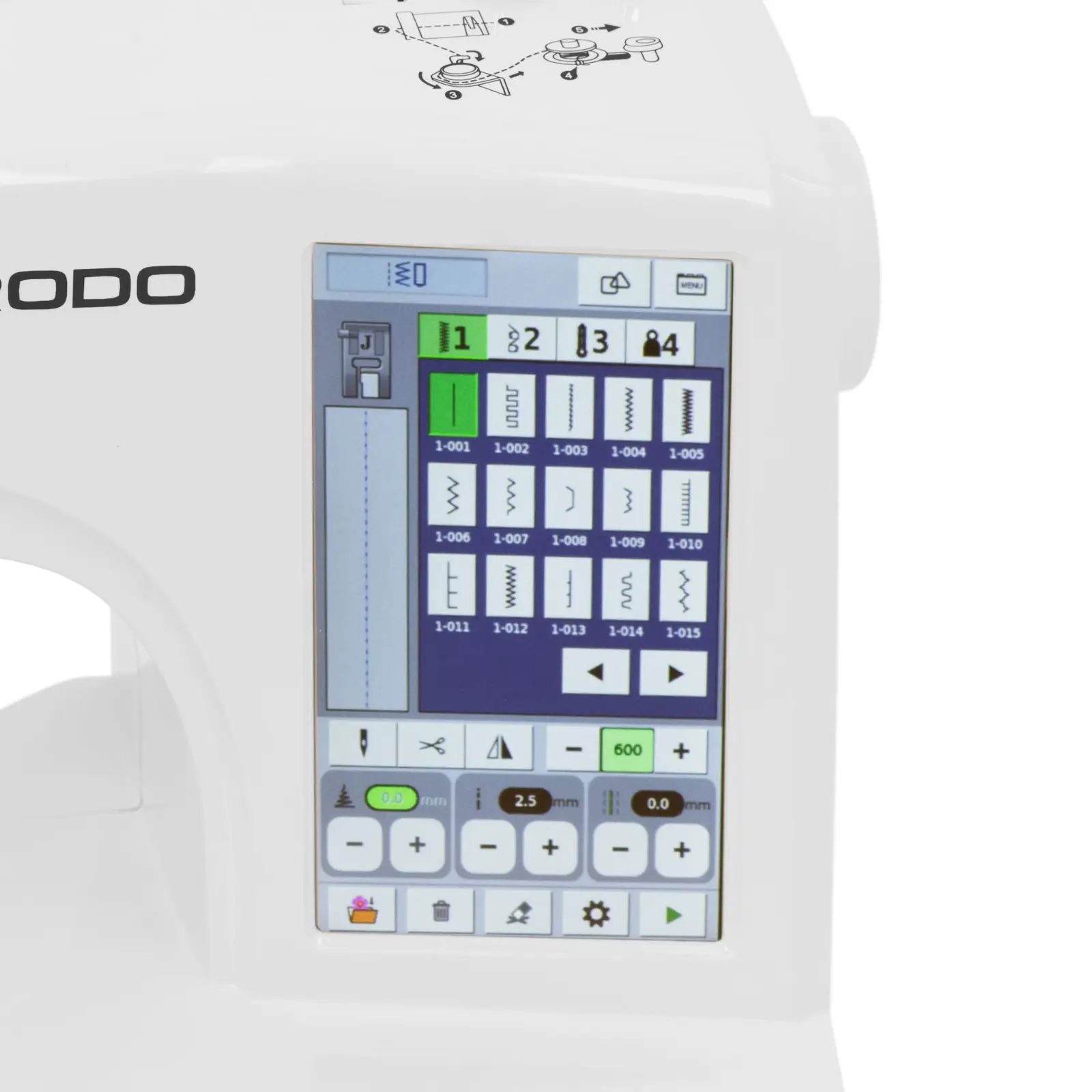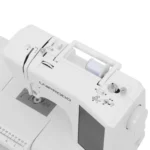 • – Maszyna do szycia z automatycznym nawlekaniem, automatycznym obszywaniem dziurek, szyciem wstecznym, automatycznym cięciem, lustrzanym odbiciem wzorów, zintegrowanymi napisami, cyframi, ramkami i wieloma innymi funkcjami,