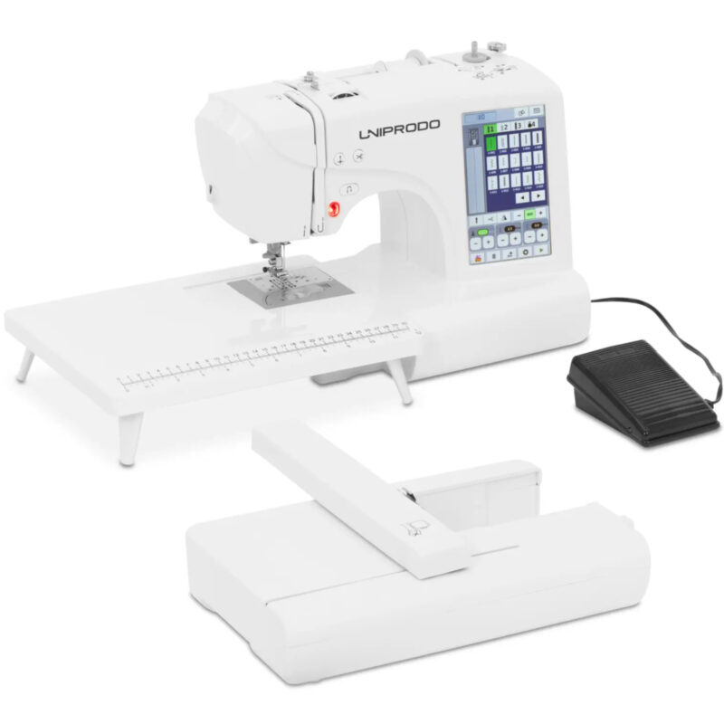 Dzięki maszynie do szycia i haftu ACENDER 2.0 marki Uniprodo można zrealizować najróżniejsze projekty krawieckie, niezależnie od tego, czy chodzi o profesjonalne szycie odzieży, zasłon i projektów artystycznych, czy o zdobienie drobnymi haftami. Maszyna jest niezwykle wszechstronna dzięki zintegrowanym wzorom. Wystarczy skorzystać ze sterowania dotykowego hafciarki, aby wybrać żądany ścieg lub wzór. Podstawowe ustawienia, takie jak długość i szerokość ściegu, można ustawić palcem lub dołączonym rysikiem. 7-calowy wyświetlacz LCD pozwala kontrolować i poprawiać parametry, a także obracać i powielać wzory i ściegi. Dzięki łatwej obsłudze maszyna jest odpowiednia zarówno dla początkujących, jak i profesjonalistów. Urządzenie posiada 160 różnych ściegów i 96 zaprogramowanych wzorów haftu. Dzięki niej można stworzyć niepowtarzalne projekty. W pamięci można zapisać do 700 wzorów. Port USB pozwala przesłać, edytować i haftować własne wzory w żądanym rozmiarze. W zestawie z maszyną znajdują się dwie ramki do haftowania w różnych rozmiarach: 10 x 10 cm i 10 x 23,5 cm. Dzięki temu można zrealizować zarówno małe, jak i duże projekty. Czujnik zerwania nici natychmiast zgłosi zerwanie górnej lub dolnej nici. Oznacza to, że wiadomo, kiedy będzie trzeba zainterweniować, aby skorygować naprężenie nici, przędzy lub poprawić podobne błędy, żeby wyczarować idealny wzór ściegu. Istnieje możliwość wszycia do 16 różnych dziurek na guziki. Dopasowana stopka do automatycznego obszywania dziurek na guziki znajduje się w zakresie dostawy. Do hafciarki dołączono też stopkę uniwersalną i do zamków błyskawicznych. Maszyna do szycia i haftu ma wiele praktycznych funkcji: automatyczne odcinanie, nawijanie nici dolnej, szycie podwójnymi igłami, haftowanie liter/cyfr/ramek, szycie wsteczne, odbicie lustrzane, łączenie ściegów, automatyczne nawlekanie, szybkie lub wolne szycie i wiele więcej. Pedał nożny pozwoli precyzyjnie skontrolować wydajność maszyny. Dzięki temu obie ręce będą wolne i będzie je można wykorzystać je do prowadzenia materiału.