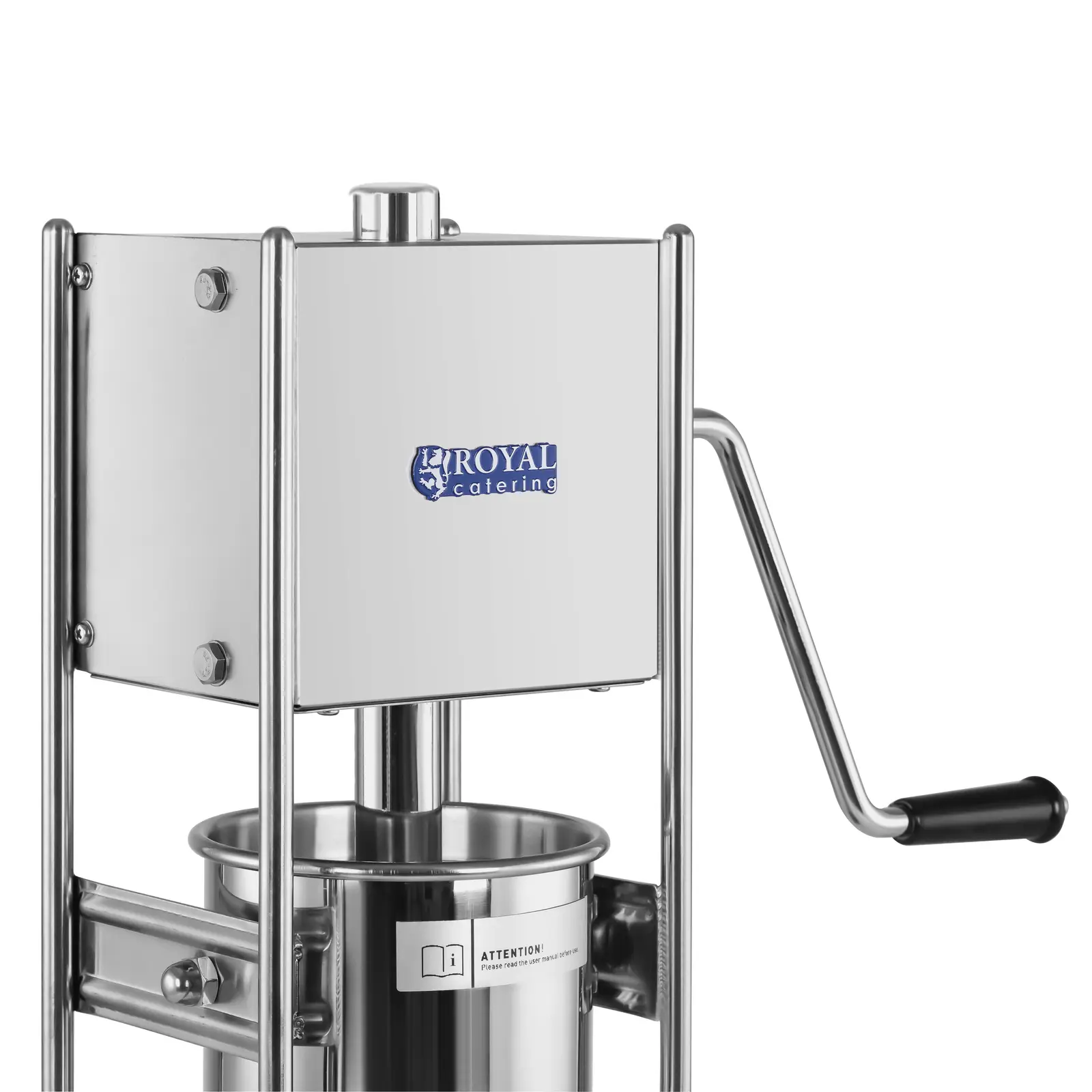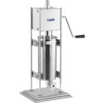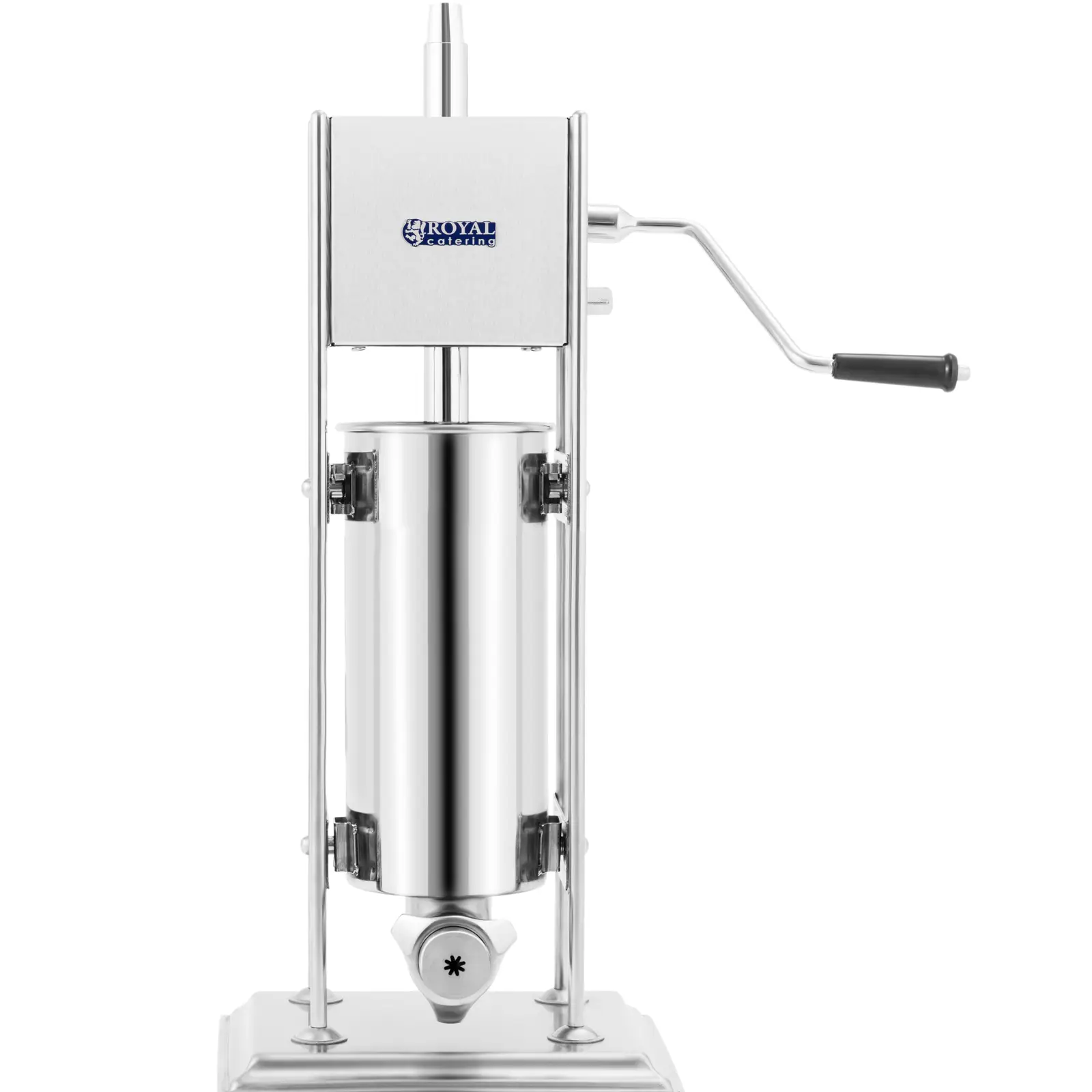 Maszyna do churros marki Royal Catering umożliwia wydajne wyciskanie ciasta na hiszpańskie pączki. Sprawdzi się w food truckach, lokalach bistro, na festynach itp. Wykonana została ze stali nierdzewnej – solidnej i łatwej w czyszczeniu, idealnej do kontaktu z żywnością. Pionowa konstrukcja pozwala oszczędzić miejsce na blacie roboczym. Dźwignia wyposażona została w ergonomiczny uchwyt, co zapewnia łatwą obsługę. Za jej pomocą dozuje się ciasto z dużego zbiornika o pojemności 5 l i wysokości 320 mm. W zestawie znajduje się 5 lejków do różnych kształtów ciasta.