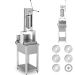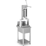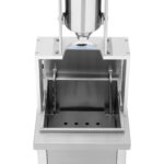 Maszyna do Churros marki Royal Catering umożliwia wyciskanie ciasta na hiszpańskie pączki a później ich smażenie na głębokim oleju w temperaturze 60-200°C. Urządzenie sprawdzi się w food truckach, lokalach bistro, na festynach itp. Dźwignia wyposażona w ergonomiczny uchwyt zapewnia łatwą obsługę. Zbiornik o pojemności 5 l i wysokości 320 mm pozwala na dozowanie dużej ilości ciasta. W zestawie znajduje się 5 lejków do różnych kształtów ciasta. Moc maszyny wynosi 5000 W. Zbiornik na olej ma pojemność 25 l. Zawór spustowy ułatwia usuwanie zużytego tłuszczu a pokrywa chroni zawartość przed zabrudzeniami. Stal nierdzewna z której wykonano urządzenie jest solidna, łatwa w czyszczeniu i idealna do kontaktu z żywnością. Pionowa konstrukcja maszyny oszczędza miejsce na blacie roboczym. Regulowane nóżki (10 mm) gwarantują stabilność sprzętu.