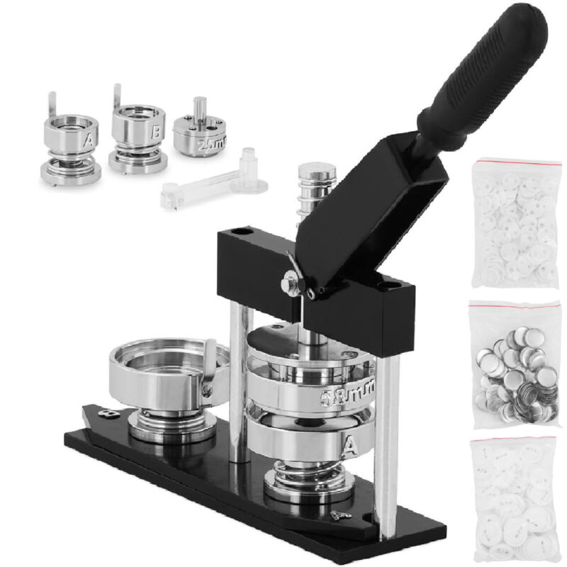 Maszyna do przypinek marki Uniprodo będziesz w stanie własnoręcznie wykonać przypinki reklamowe dla swojej firmy lub na event. Sprawdzi się więc w biznesie, podczas organizacji wesel, studniówek, koncertów, festiwali, akcji społecznych. Maszynę wyposażono w dwie formy o średnicy 25 i 58 mm.