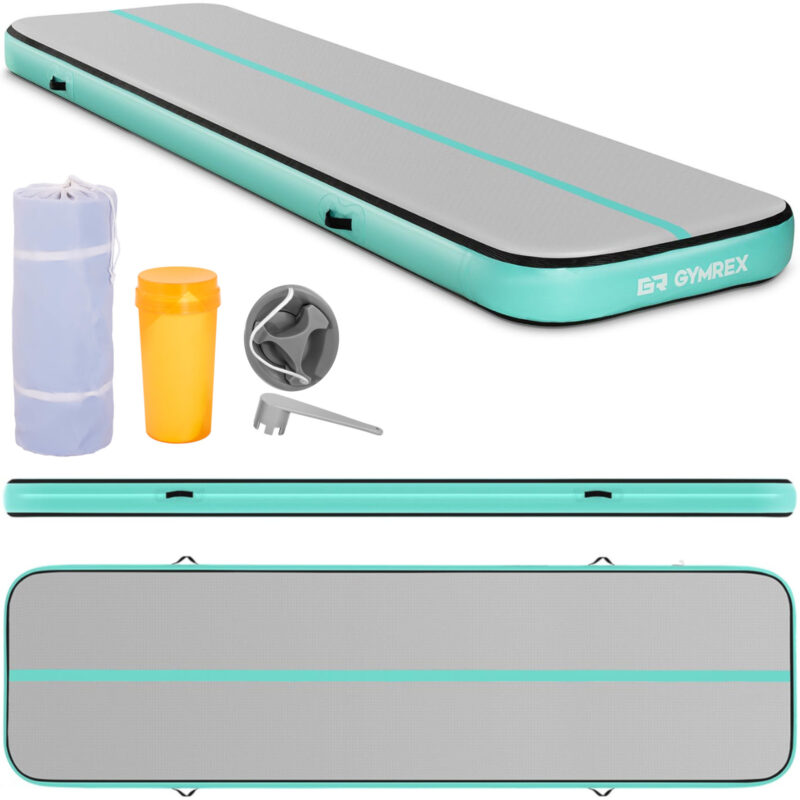 Dmuchany materac gimnastyczny marki Gymrex zapewnia każdemu miłośnikowi aktywności fizycznej wysoki poziom asekuracji podczas wykonywania ćwiczeń. Ze względu na swoją solidność sprawdzi się w klubach fitness, szkołach tańca, salach treningowych, ośrodkach sztuk walki, szkolnych salach gimnastycznych, a także w domu. Po spuszczeniu powietrza łatwo ją przechowasz i przeniesiesz, dzięki zapięciom na rzepy. Mata gimnastyczna została wykonana z trwałego materiału PVC, Nylon 1000 DEN z podwójnymi ściankami. Dzięki zastosowanym materiałom mata dmuchana jest bezpieczna, antypoślizgowa i nie odkształca się. Wytrzymuje ciśnienie do 10 PSI / 0.7 bar. Mata jest prosta w obsłudze, można wypełnić ją powietrzem i spuścić je przy pomocy specjalnej elektrycznej pompki (dostawa jej nie obejmuje). Natomiast, dzięki nylonowym uchwytom wygodnie ją przeniesiesz. Materac akrobatyczny jest bardzo łatwo wyczyścić.