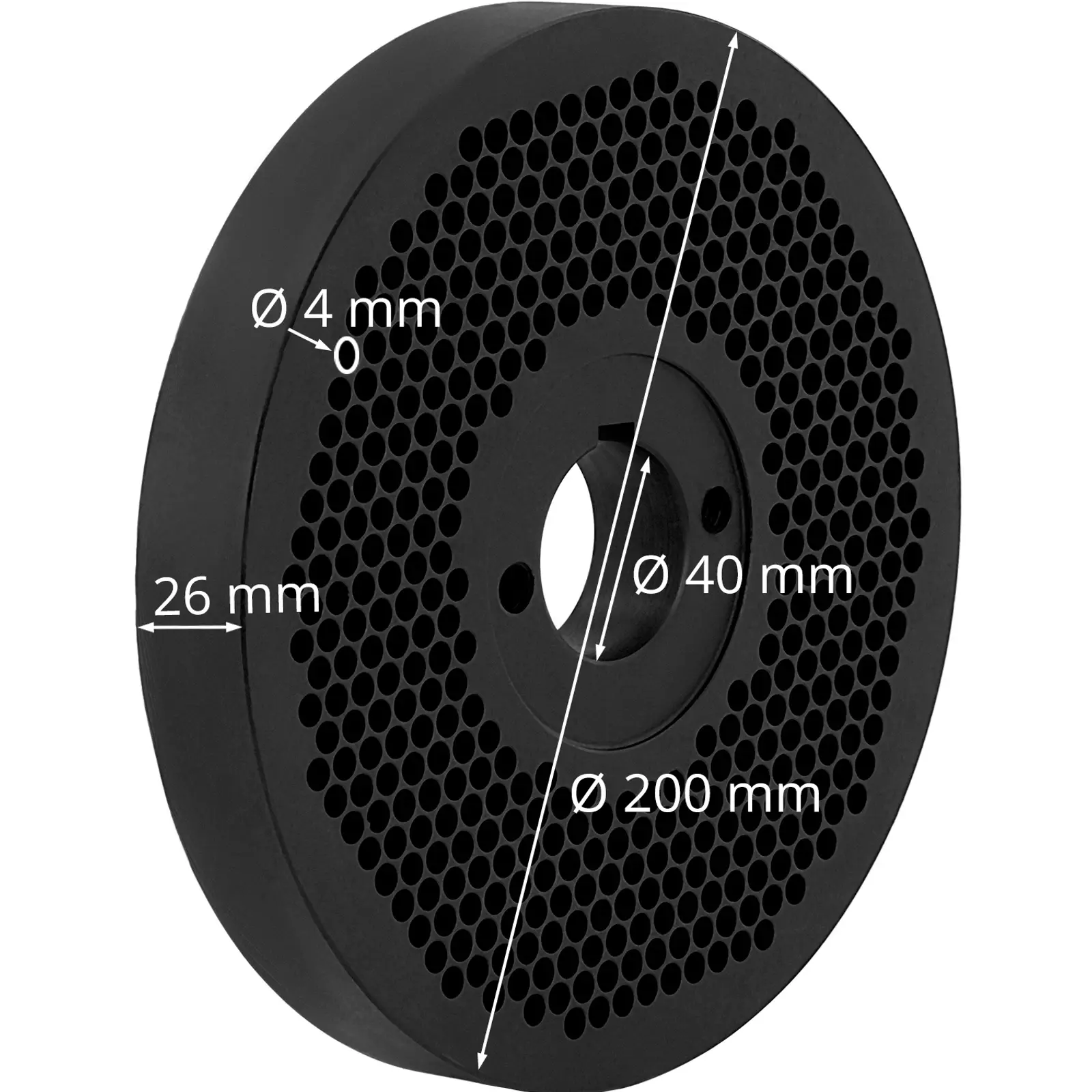 Solidna oraz precyzyjna matryca do peleciarki marki Wiesenfield umożliwia produkowanie pelletu o średnicy 4mm. Jej wymiary odpowiadają dokładnie granulatorowi i można ją wymienić na standardową matrycę w zaledwie kilku prostych krokach. Matryca wykonana jest z trwałego stopu stali, który z łatwością wytrzymuje intensywną eksploatację. Zachowuje swój kształt nawet przez lata. Sito do pelletu można zainstalować w peleciarce WIE-PM-1000. Przy średnicy 200 mm i wysokości 27 mm jego wymiary dokładnie mieszczą się pod rolką dociskową. Podczas montażu należy zapewnić odstęp od 0,1 do 0,3 mm między matrycą a rolką. Profesjonalnie zainstalowana, niezawodnie i równomiernie wytwarza pellet, który w zależności od składu można wykorzystać jako paszę lub nawóz. Matryce do peleciarek mogą być używane do 300 godzin. Jeśli są zużyte, należy je niezwłocznie wymienić.