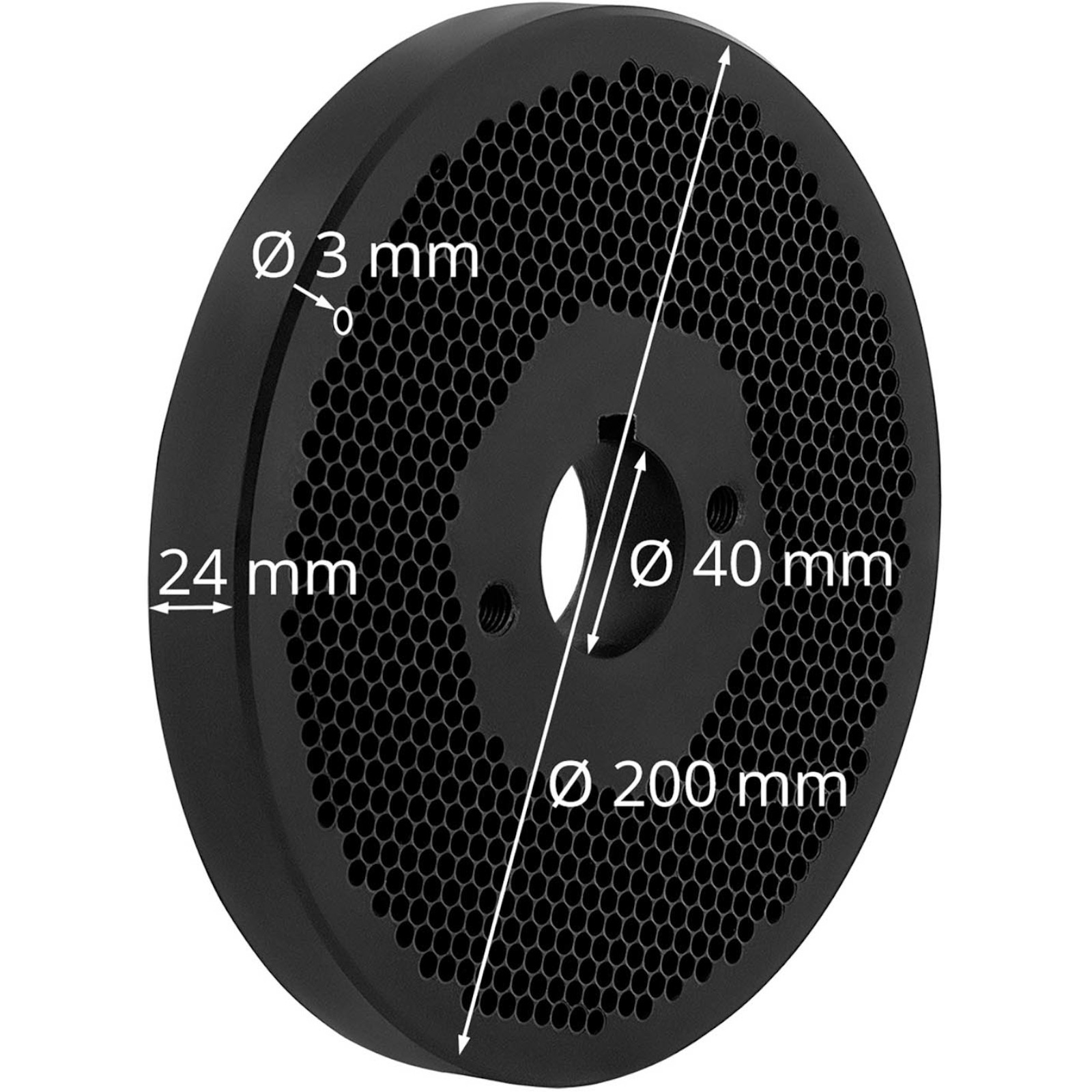 Matryca do peleciarki marki Wiesenfield sprawdzi się do produkcji i formowania pelletu. Matryca do peletu jest wykonana z trwałego stopu stali, który z łatwością wytrzymuje intensywną eksploatację. Zachowuje swój kształt nawet przez lata i niezawodnie wytwarza granulki o średnicy 3 mm. Sito do pelletu można zainstalować w peleciarce w zaledwie kilku prostych krokach. Średnica 200 mm oraz wysokość 27 mm umożliwiają jej dokładne umieszczenie pod rolką dociskową. Podczas montażu należy zapewnić odstęp od 0,1 do 0,3 mm między matrycą a rolką. Profesjonalnie zainstalowana matryca wytwarza pellet, który w zależności od składu można wykorzystać do karmienia zwierząt lub nawożenia ogrodu. Matryce do peleciarek mogą być używane do 300 godzin. Jeśli są zużyte, należy je niezwłocznie wymienić.