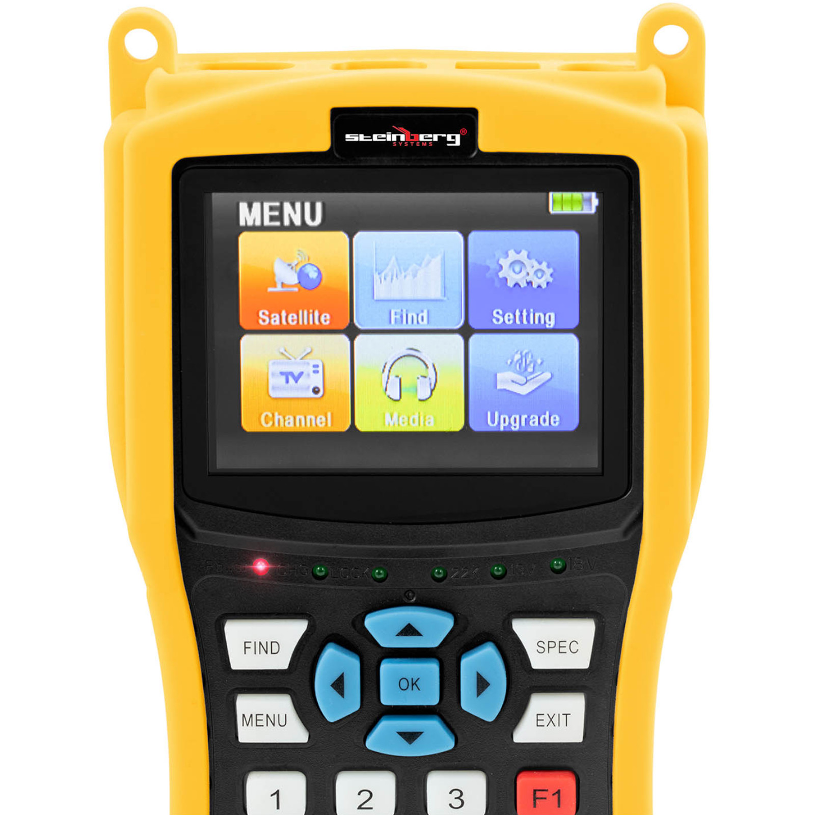 Miernik sygnału satelitarnego marki Steinberg Systems pozwala uniknąć zakłóceń podczas odbioru ulubionych programów. Miernik dostosowano do wykrywania i mierzenia sygnałów satelitarnych w standardzie DVB-S2. Dla zapewnienia najlepszego odczytu sprzęt ma możliwość przeprowadzenia analizy widma. Wgrane ustawienia i pozycje kilkunastu satelitów zapewniają łatwe użytkowanie. Wbudowany port USB umożliwia pobranie nowych danych. Miernik posiada wbudowaną lampkę LED, głośnik i zasilanie baterią (11,1 V / 220 mAh). Urządzenie jest zgodne z protokołami DiSEqC 1.0, 1.1, 1.2, 1.3 oraz wyposażone w system USALS odpowiadający za automatyczne ustawienie parametrów anteny. Wyświetlacz LCD 3,5′ umożliwia czytelny odczyt oraz posłuży do odbioru kanału w jakości HD. Funkcjonalne rozwiązania sprawdzą się m.in. przy instalacji systemu monitoringu. Wejście CCTV umożliwi podłączenie kamery w celu sprawdzenie poprawności jej działania. Wyjście AV/HD TV pozwala skontrolować pracę odbiornika. Miernik posiada 10 dostępnych języków: angielski, czeski, duński, francuski, niemiecki, włoski, portugalski, hiszpański, szwedzki, rosyjski.