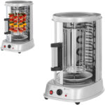 Grill pionowy Royal Catering to profesjonalny sprzęt gastronomiczny do opiekania m.in. kurczaka, ryb, kebaba i warzyw. Bogaty zestaw akcesoriów ze stali nierdzewnej można dopasować do danego produktu. Model RCGV-1400 o mocy 1500W zapewnia szybkie osiągnięcie maks. temperatury 120°C i wydajne grillowanie. Na obrotowym rożnie żywność podgrzewa się równomiernie. Za sprawą wyciąganej tacy na tłuszcz i gładkiej powierzchni sprzęt jest łatwy w czyszczeniu. Drzwiczki z hartowanego szkła zwiększają bezpieczeństwo eksploatacji. Urządzenie świetnie nadaje się do użytku m.in. w restauracji, barze, bistro i firmie cateringowej.