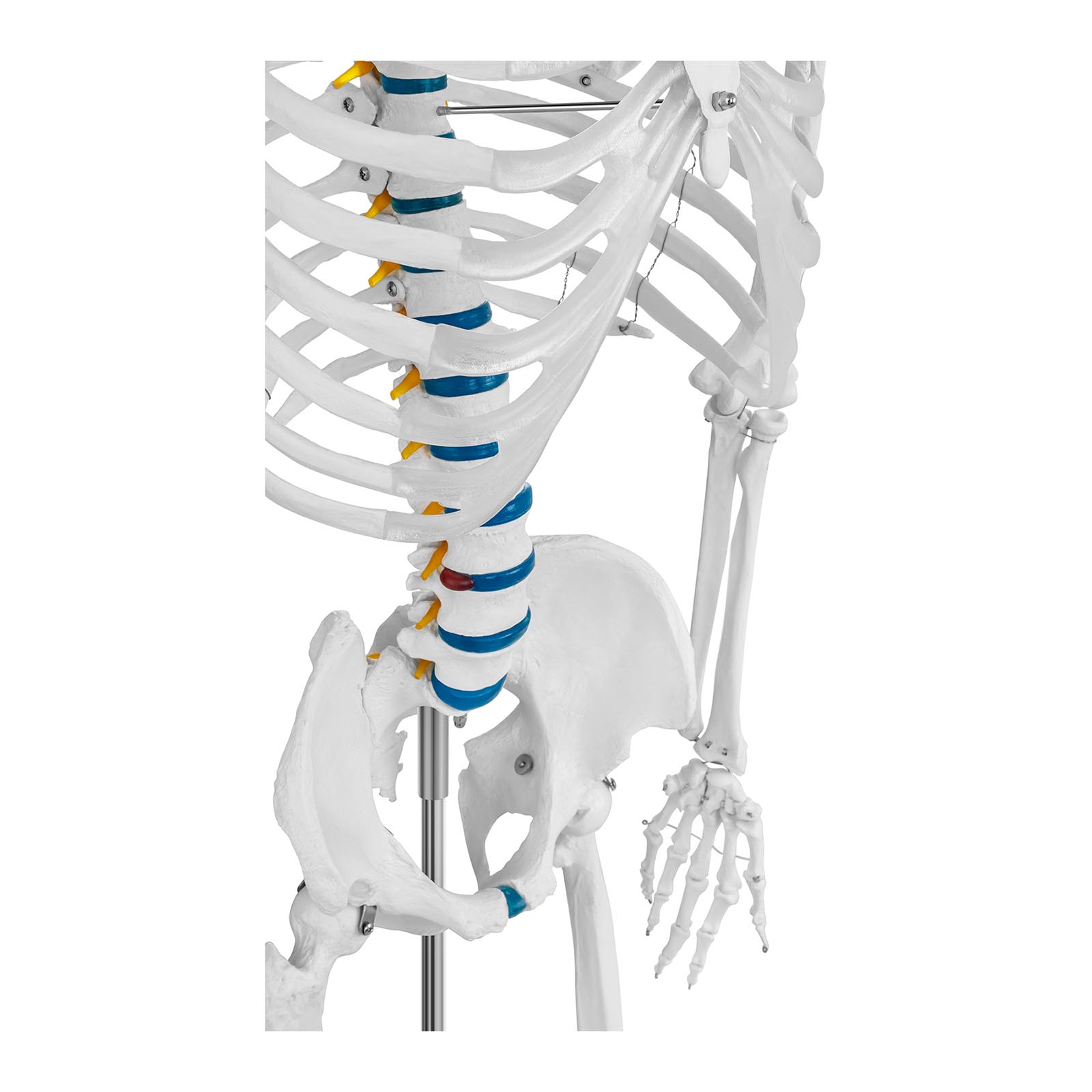 Model szkieletu człowieka o wysokości 176 cm jest dokładnym odwzorowanie ludzkiego układu kostnego. Zastosowanie ruchomych kończyn i łączeń pozwala na precyzyjne zobrazowanie pracy stawów. Dodatkowo kręgosłup, naczynia kręgowe, korzenie nerwów oraz krążki międzykręgowe zostały w widoczny sposób wyeksponowane. Istnieje także możliwość otwarcia czaszki. Dzięki temu model doskonale sprawdzi się podczas nauki anatomii człowieka.
