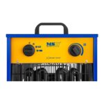Nagrzewnica elektryczna o mocy 9000 W i przepływie powietrza do 787 m3/h. Sprawdzi się zarówno przy ogrzewaniu pomieszczeń mieszkalnych lub użytkowych, np. piwnic, magazynów, hal produkcyjnych, szklarni, garaży, warsztatów, jak i również podczas osuszania ich z nadmiernej wilgoci. Czteropozycyjny przełącznik pozwala na wyłączenie nagrzewnicy, włączenie wentylatora (funkcja chłodnego powietrza – 100 W) oraz wybór siły grzania (4500 W i 9000 W), a bezstopniowe pokrętło umożliwia regulacje siły grzewczej.