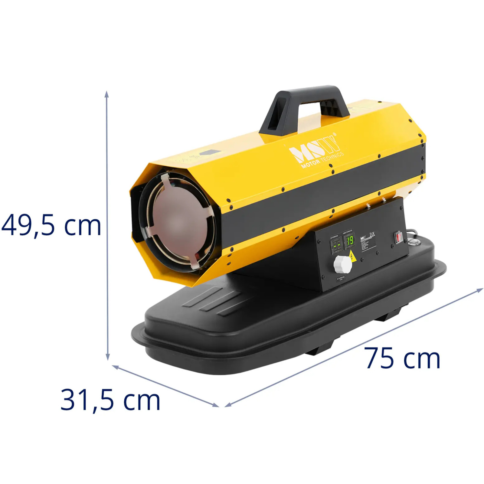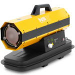 Nagrzewnica olejowa marki MSW pozwala szybko i skutecznie ogrzać duże powierzchnie. Sprawdzi się w magazynie, warsztacie czy na placu budowy. Urządzenie zasilane jest olejem napędowym, który wlewa się do 18-litrowego zbiornika. Przy zużyciu paliwa 1,43 l/h dmuchawa jest niezwykle efektywna i gwarantuje optymalne rezultaty aż do 12 godzin przy pełnym baku. Praktyczny uchwyt pozwala wygodnie przenieść maszynę. Moc 20 kW i temperatura wyjściowa 450°C umożliwiają szybkie ogrzanie otoczenia do żądanej temperatury, którą ustawia się do 55°C za pomocą wyświetlacza LED. Termostat sprawdza temperaturę zewnętrzną i włącza nagrzewnicę warsztatową, jeśli spadnie poniżej ustawionej wartości. Przy pełnej mocy dmuchawa olejowa wytwarza 600 m³/h gorącego powietrza. Wentylator rozprowadza je równomiernie w pomieszczeniach o powierzchni do 210 m². Urządzenie zostało wykonane z wytrzymałej blachy stalowej. Dla bezpieczeństwa wyposażono je w szereg zabezpieczeń. Czujnik rozpoznaje niekontrolowane płomienie i automatycznie wyłącza urządzenie. Dodatkowo zastosowano zabezpieczenie przed przegrzaniem, co zapewnia bezpieczną, ciągłą pracę. Korzystając z nagrzewnicy olejowej, należy upewnić się, że pomieszczenia są zawsze dobrze wentylowane.