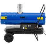 Nagrzewnica olejowa marki MSW pozwala szybko i skutecznie ogrzać pomieszczenie magazynowe, czy namiot do komfortowej temperatury. Do zasilania wykorzystuje się olej napędowy, który pomieści zbiornik 20 l. Wystarczy ustawić nagrzewnicę gazową na wózku, aby zapewnić optymalną temperaturę pracy na placu budowy, w magazynie lub warsztacie. Moc 20000 W i temperatura wyjściowej 450°C pozwala szybko doprowadzić temperaturę w pomieszczeniu do odpowiedniego poziomu. Temperaturę ustawia się za pomocą panelu z wyświetlaczem LED. Termostat sprawdza temperaturę zewnętrzną i nagrzewa urządzenie, jeśli spadnie poniżej ustawionej wartości. Przy pełnej mocy dmuchawa grzewcza generuje przepływ gorącego powietrza na poziomie 1071 m³/h. Wentylator rozprowadza je równomiernie po całym pomieszczeniu. Nagrzewnica ogrzeje pomieszczenie do 123 m². Urządzenie wyposażone jest w podwozie z kółkami i uchwytem, dzięki czemu jest mobilne i można łatwo je przestawić. Przy zużyciu 1.43 l/h nagrzewnica jest niezwykle wydajna. Dmuchawa wykonana jest z wytrzymałej blachy stalowej i ma szereg zabezpieczeń. Czujka rozpoznaje niekontrolowane płomienie i automatycznie wyłącza urządzenie. Dodatkowo posiada zabezpieczenie przed przegrzaniem, które gwarantuje bezpieczną ciągłą pracę. Należy pamiętać, aby przy używaniu nagrzewnicy, pomieszczenia były zawsze dobrze wentylowane