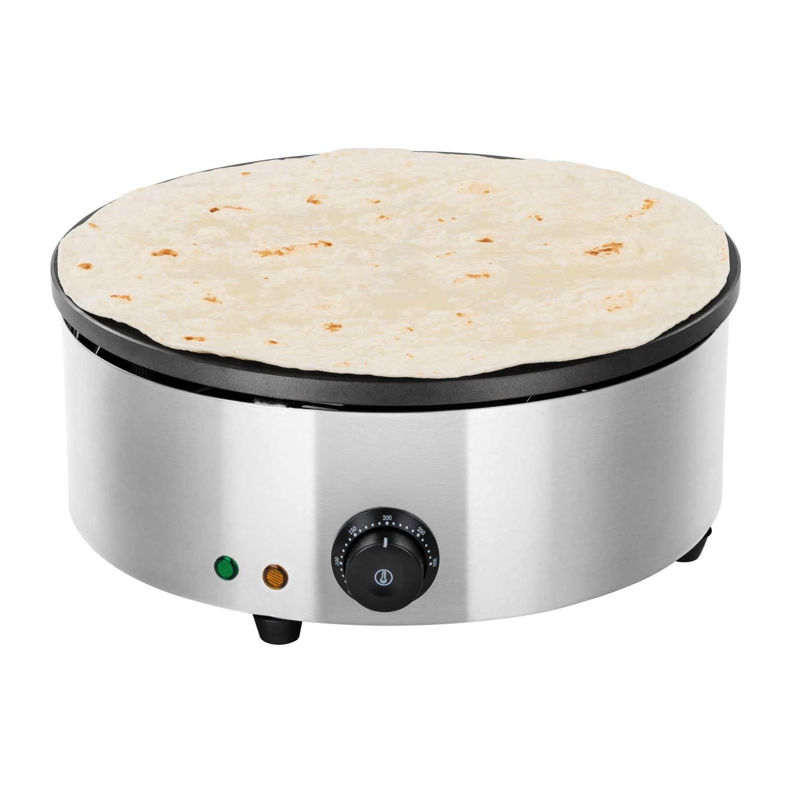 Profesjonalna naleśnikarka o dużej mocy i specjalnej powłoce na grubej płycie grzewczej pozwala na bezproblemowe i błyskawiczne przygotowanie zawsze idealnych, pulchnych naleśników.