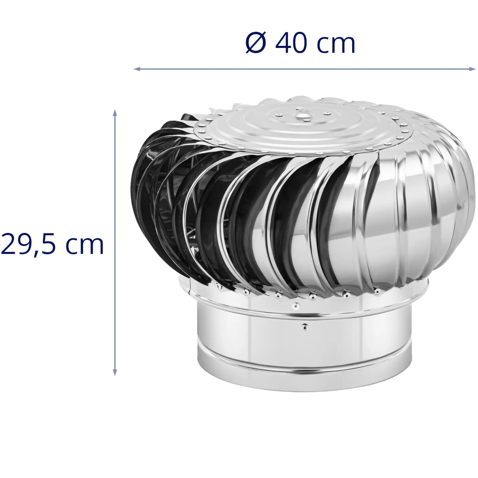 Nasada kominowa marki MSW zapewni maksymalną ochronę przed liśćmi, deszczem, śniegiem i zwierzętami w szybie wentylacyjnym. Solidna konstrukcja jest odporna na silne wiatry, dzięki czemu spaliny i powietrze będą optymalnie odprowadzane na zewnątrz, nawet podczas burzy. Obrót napędzanej wiatrem nasady wytworzy dość podciśnienia w kominie, aby wyssać powietrze. Gwarantuje to bezpieczne działanie systemu odprowadzania spalin lub kominka i to bez użycia prądu. Nakładkę łatwo zamontować samodzielnie. Nie potrzeba żadnych uprawnień, doświadczenia ani specjalnych narzędzi. Nasada kominowa, która jest wstępnie zmontowana i gotowa do użycia, ma średnicę 25 cm. Turbina mierzy 38 cm. Nakładka zaczyna pracować przy różnicy temperatur wynoszącej zaledwie 0,5°C. Dzięki czemu stale wentyluje pokoje, magazyny i hale produkcyjne. Przy silnym wietrze czasza obraca się z prędkością do 1400 obr./min. Wykonana jest z kwasoodpornej stali nierdzewnej wysokiej jakości. Materiał ten jest odporny na wszelkie warunki atmosferyczne i chemikalia zawarte w dymie, co znacznie wydłuża żywotność modelu.