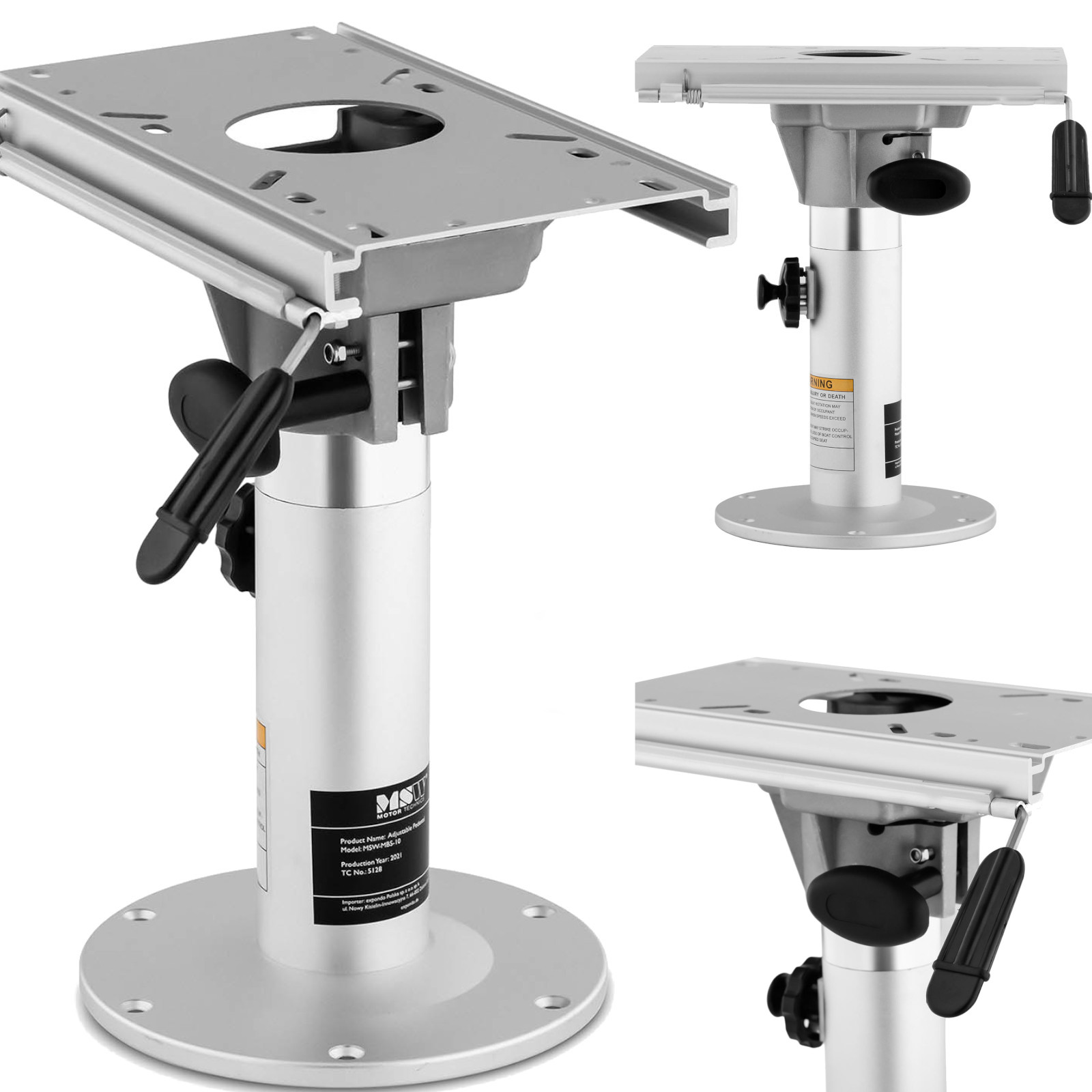 Noga fotela do łodzi marki MSW znajdzie zastosowanie w wielu rodzajach jednostek pływających, na jachtach, w łodziach wędkarskich czy na kutrach rybackich. Sprawdzi się także na łodziach morskich, jest odporna na działanie słonej wody. Stabilna podstawa o wymiarze 23 cm posiada regulowaną wysokość w zakresie 330-480 mm. Stelaż ma pełną regulację obrotu w zakresie 360°. Noga wykonana została z włókna szklanego oraz PP.