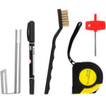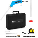 - – Nóż do cięcia styropianu w zestawie z 2 ostrzami prostymi (200 i 250 mm), ostrzem do żłobienia, regulowaną prowadnicą, markerem, szczotką i kluczem imbusowym, a wszystko schowane w praktycznej walizce transportowej.