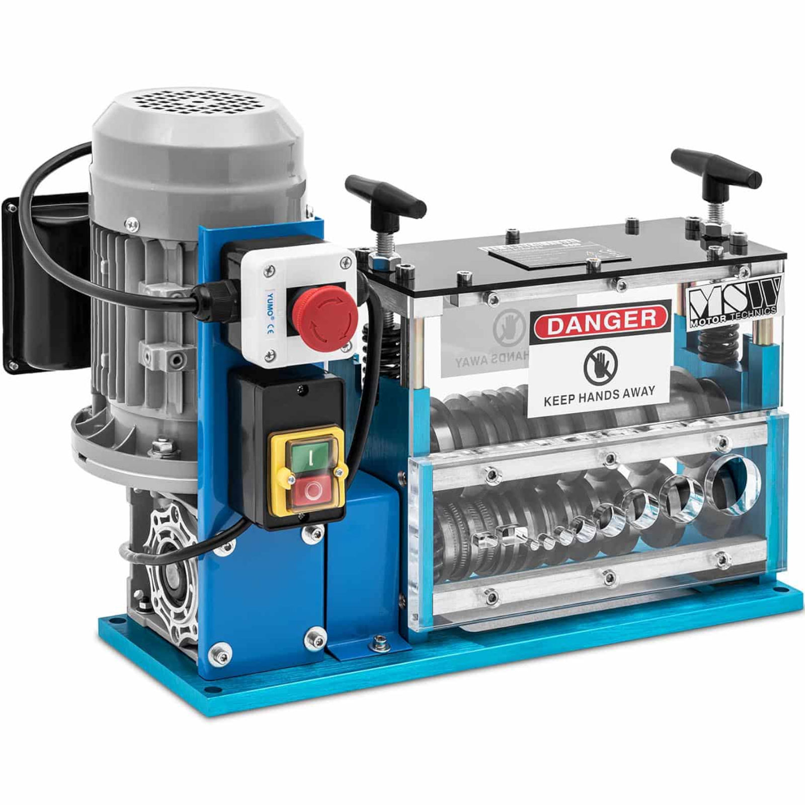 Korowarka do kabli marki MSW o mocy wyjściowej 750 W i automatycznej szybkości cięcia 25 m/min pozwoli na wyjątkowo szybką pracę przy niewielkim zmęczeniu. Obieraczka oferuje 10 rolek tnących do kabli o różnych średnicach do 35 mm. Nadaje się do kabli miedzianych, aluminiowych i płaskich. Kompaktowa i solidna konstrukcja oraz bardzo wytrzymała obudowa chroni przed zużyciem. Obieraczka odprowadza elektrycznie, pozostałości izolacji na tył. Maszyna ma przygotowane otwory do przymocowania jej do blatu roboczego w celu zapewnienia bezpiecznej i stabilnej podstawę. Włącznik/wyłącznik jest zabezpieczony przed kurzem w celu niezawodnej obsługi. Korowarka zaopatrzona jest też w wyłącznik awaryjny, który przerwie prace maszyny za jednym ruchem ręki.